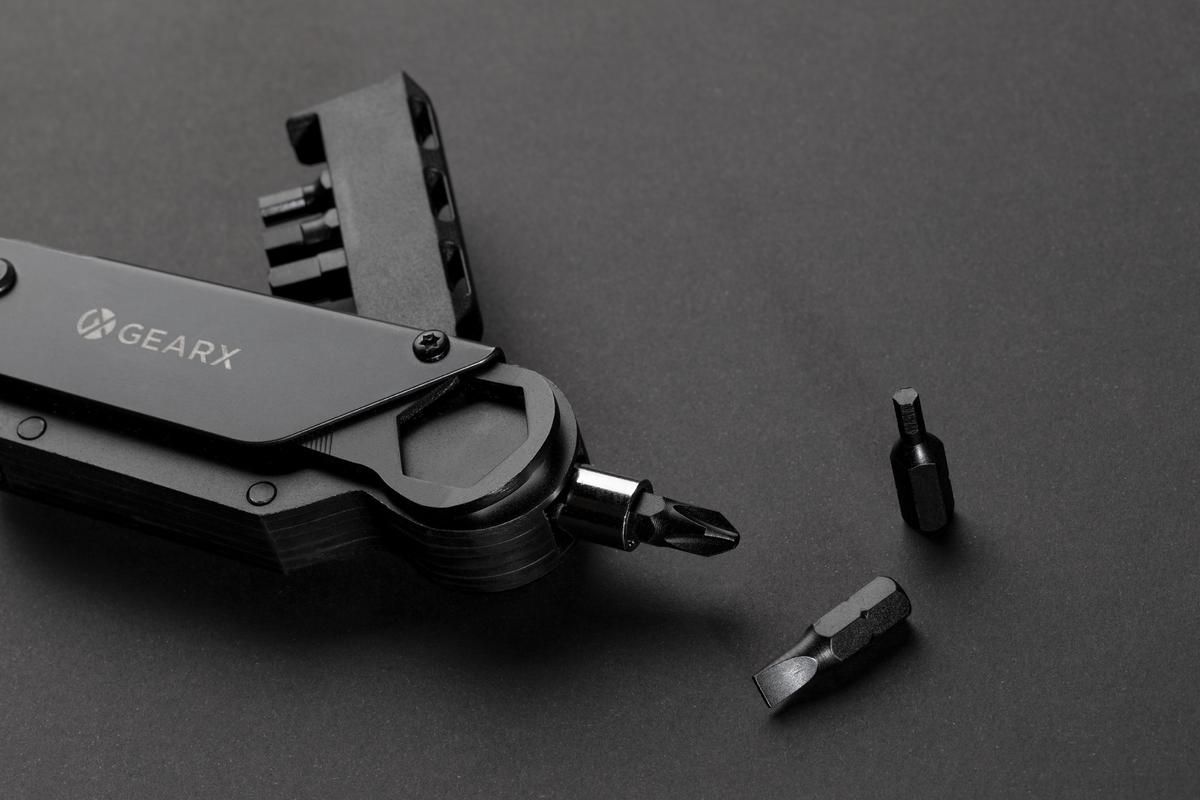 Outil multifonction pour réparer votre vélo en un rien de temps, de qualité avec corps en aluminium et outils en acier inoxydable 420 de qualité, le tout entièrement noir. Les 16 fonctions comprennent : rallonge-embouts, porte-embout intégré ( S2.5, S2 5mm, S2 4mm, S3 3mm, S2 6mm, S2 PH2) , rayon 3.4/3.3, cutter, adaptateur, clé multifonction 18mm, deuxième clé multifonction 15/10/8 mm, lime. Niveau de dureté des outils 40-45 HRC et des embouts 60-62 HR. Emballé dans une boîte cadeau.