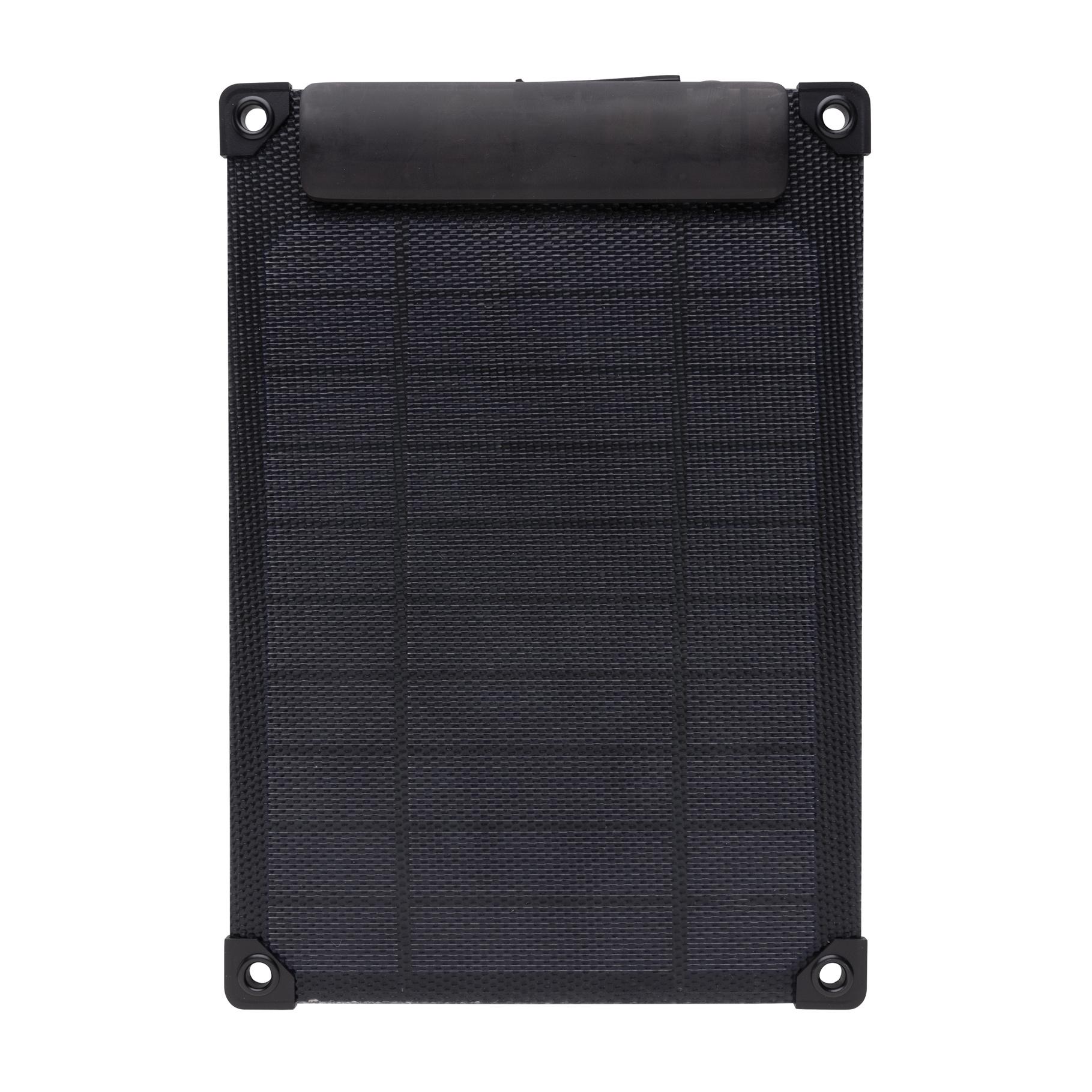 Panneau solaire 5W qui permet de charger directement votre téléphone , votre haut-parleur, votre powerbank ou tout autre appareil. Connectez simplement votre câble à l'appareil lorsque le panneau est exposé à la lumière du soleil et commencez à le charger. Le taux de charge dépend des conditions. Le panneau utilise des panneaux solaires monocristallins de haute qualité avec un taux de conversion de 21 %. Avec sortie USB A et Type C (max 5V/1A) et indicateur de charge pour montrer la vitesse de charge. Vitesse de charge solaire : 5V/1000mA. Fabriqué avec en PET et de l'ABS recyclé certifié RCS. Avec fonction de support intégrée pour utiliser les panneaux solaires à un angle optimal. Étanchéité IPX 6. Livré dans un emballage FSC® mix.