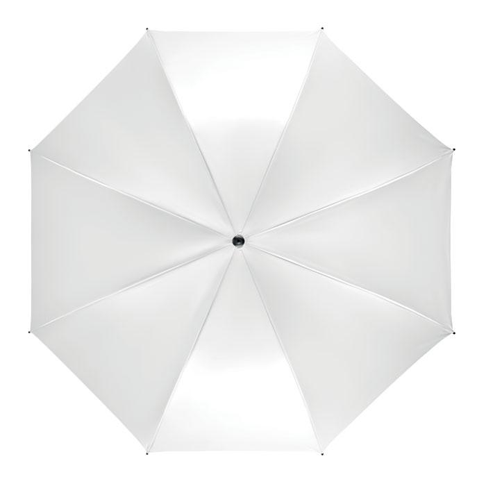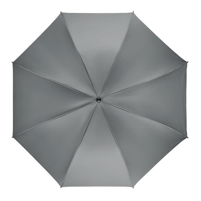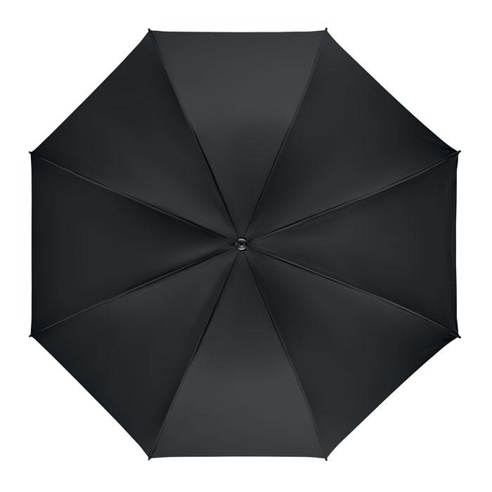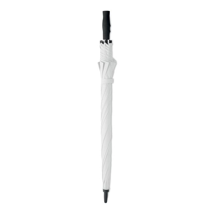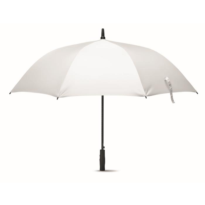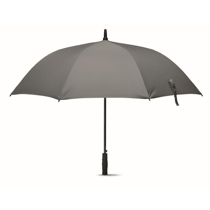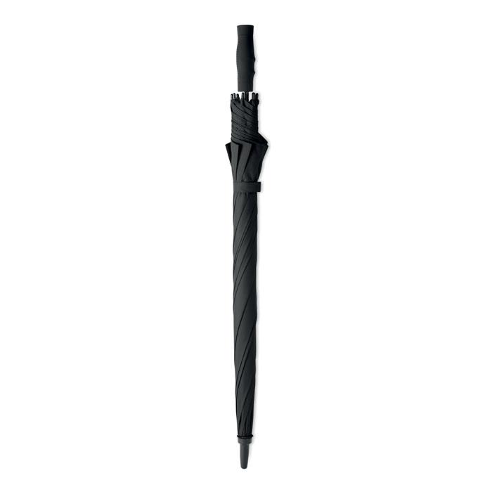 Parapluie 27'', tempête, manuelle automatique en pongée 190T avec mât et baleines en fibre de verre. Embouts en plastique noir. Poignée droite en ABS noir avec finition caoutchoutée. Fermeture manuelle.