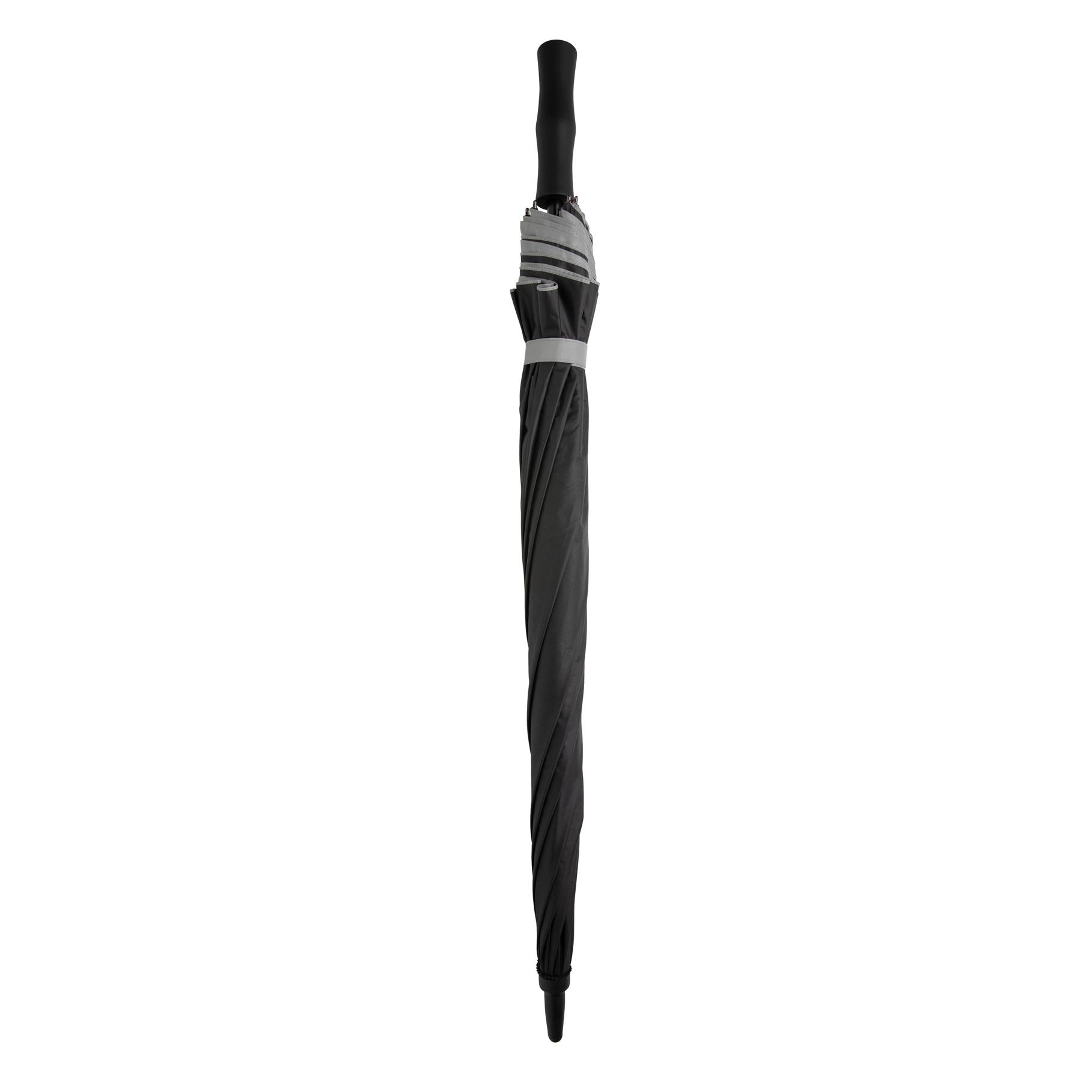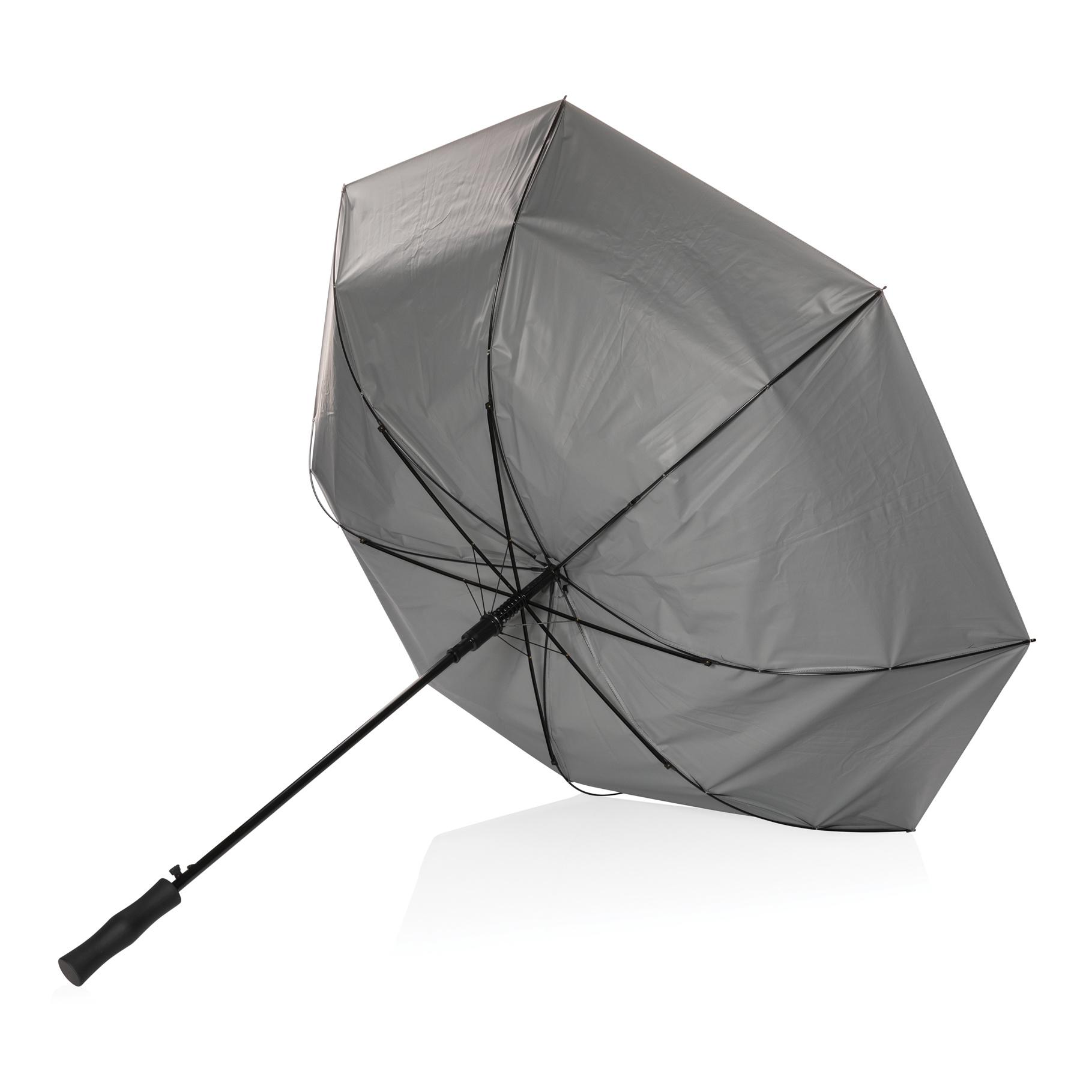 Grand parapluie de 27 pouces à ouverture automatique, au design unique bicolore. Mât en métal, baleines en fibre de verre et poignée en PP. Ce parapluie a économisé 6,3 litres d'eau et est fabriqué à partir de 10,7 bouteilles PET (500ml).