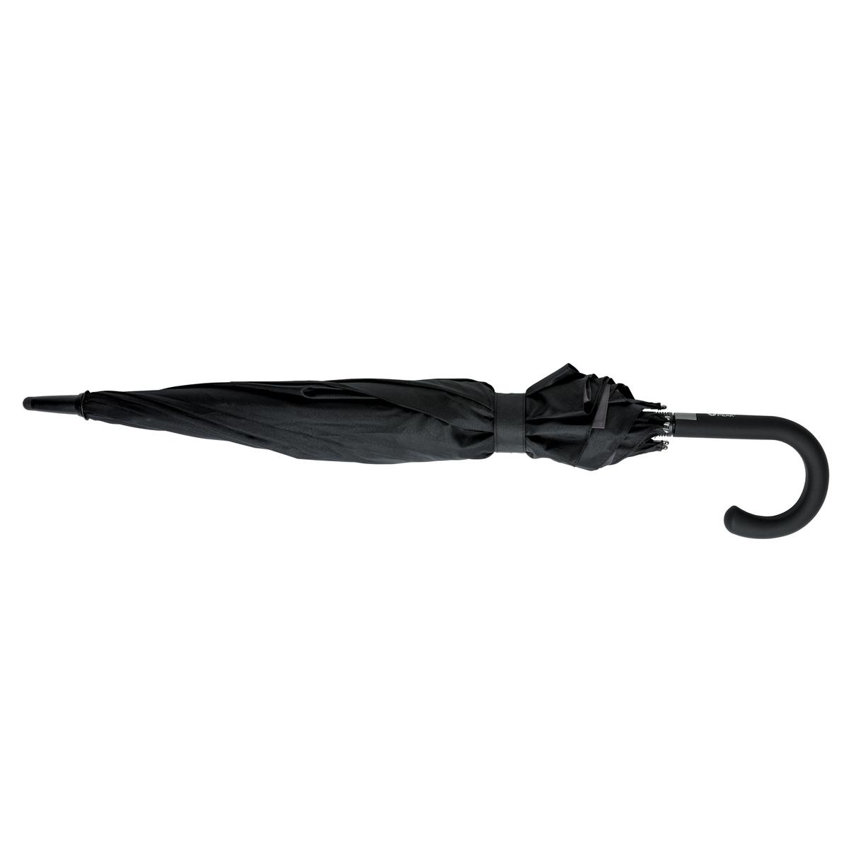 Parapluie à ouverture automatique et fermeture manuelle conçu pour être à la fois compact et spacieux, offrant une protection suffisante contre la pluie. Lorsqu'il est plié, il est aussi petit et léger qu'un parapluie de taille 23", ce qui le rend facile à transporter. Lorsqu'il est ouvert, le parapluie se déploie automatiquement pour atteindre une taille de 27 pouces, offrant ainsi une protection suffisante pour deux personnes. Il est doté d'un manche en métal, de baleines en fibre de verre et d'embouts en PP, ainsi que d'une poignée noire mate. La fonction anti-tempête garantit que vous resterez au sec. Fabriqué avec le traceur AWARE™ qui valide l'utilisation authentique de matériaux recyclés. 100 % polyester recyclé 190T pongé. 2 % des recettes de chaque produit Aware™ vendu seront reversés à Water.org.