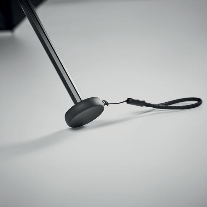 Mini parapluie tempête 3 plis de 19'' à ouverture et fermeture manuelle en polyester pongé 30D. Mât et baleines en fibre de carbone noire et embouts en plastique. Présenté dans une pochette. 100 gr.