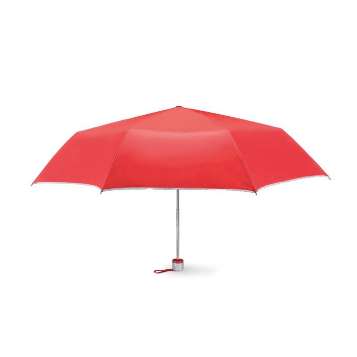 Parapluie pliable avec doublure argentée. Etui en couleur assortie. 8 pans, polyester 190T. Diam 96 cm. Long. Mât 51 cm