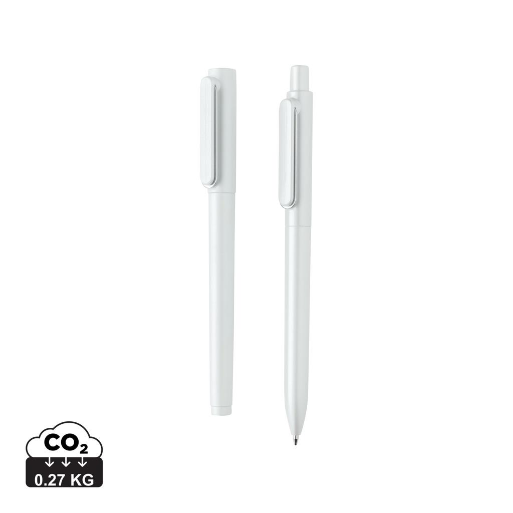 Parure de stylos avec finition métallique et d'un clip en métal. Ce set comprend le stylo X6 et le petit nouveau le stylo à capuchon X6. Le stylo possède une encre bleue Dokumental® de fabrication allemande pour +/- 1200m d’écriture et bille en carbure de tungstène assurant une écriture régulière. Le stylo à capuchon contient une encre bleu à faible viscosité qui permet une écriture encore plus douce pour +/- 800m d’écriture. Emballé dans une boîte cadeau de couleur assortie.