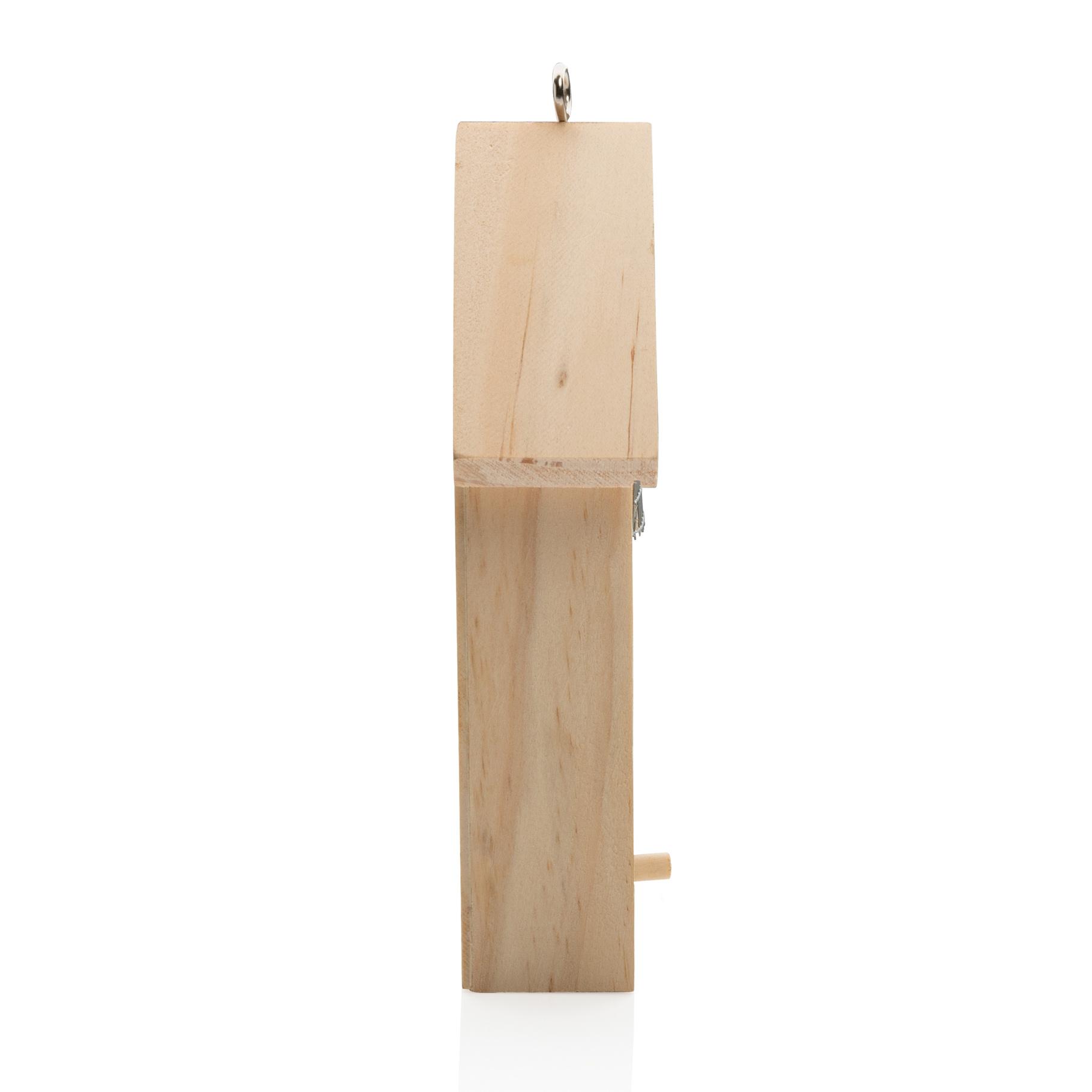 Les insectes sont indispensables dans la nature ! Ce petit hôtel à insectes en bois accueillera des abeilles solitaires et des chrysopes. L'hôtel à insectes doit être placé dans un endroit ensoleillé, protégé du vent et de la pluie, à au moins 50 cm du sol. L'avant avec l'ouverture doit être placé sur le côté ensoleillé. A l'arrière, il y a un trou pour le suspendre facilement.