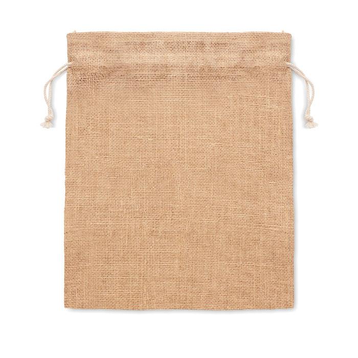 Sac cadeau petite taille en jute avec cordon. Dimension env. 14 x 22 cm.