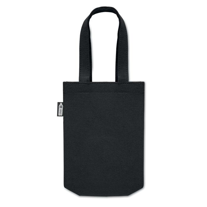 Petit sac cadeau en feutre RPET avec anses courtes et soufflets de fond. Epaisseur du feutre : 1 mm.