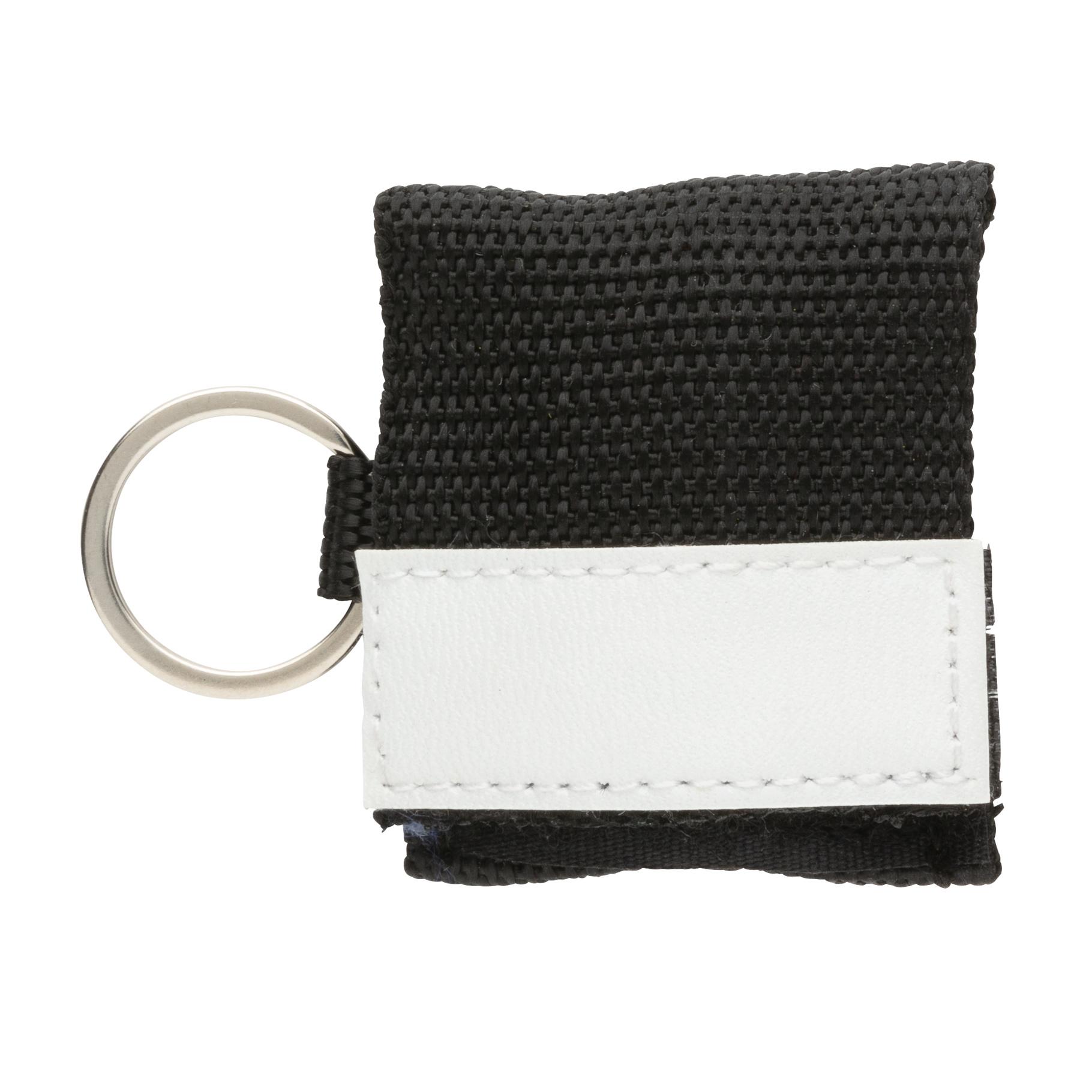 Petite pochette de premiers secours en toile rouge, fermeture par bande Velcro rouge, sangle noire de 1cm avec un anneau brisé en métal de 2,5cm. masque pour la bouche, conforme à la norme EN 13485:2003. Vente en Suisse interdite.