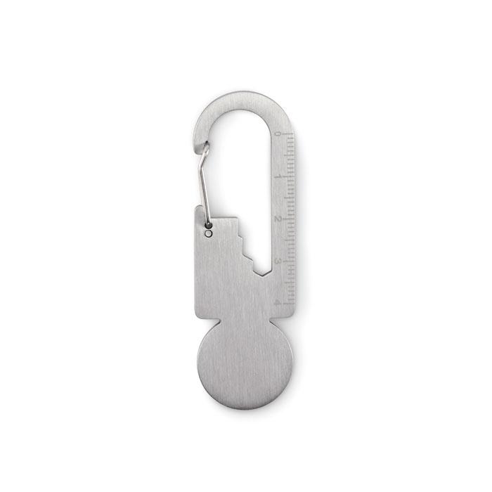 Jeton de chariot avec porte-clés en acier inoxydable recyclé (90% acier inoxydable recyclé et 10% d'acier inoxydable) et outil multifonction comprenant un ouvre-bouteille, une règle et une clé hexagonale 5,5mm, 7mm et 8mm.