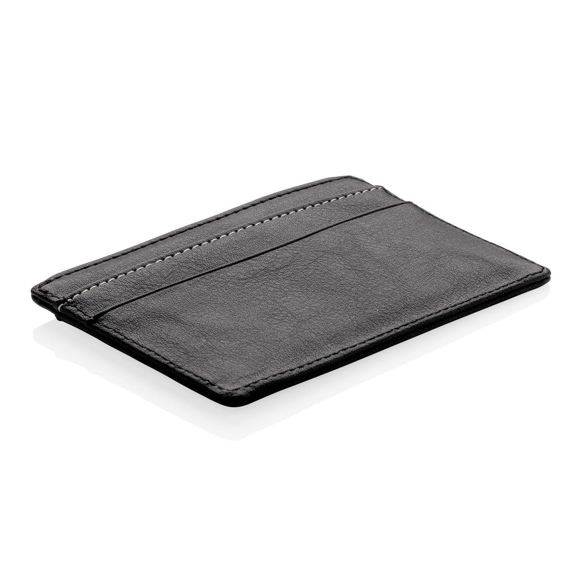 Porte-cartes en PU simili cuir avec 3 emplacements pour 6 cartes et poche centrale divisé en deux pour les billets et pièces.
