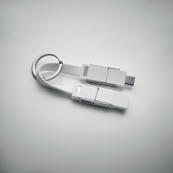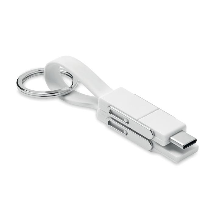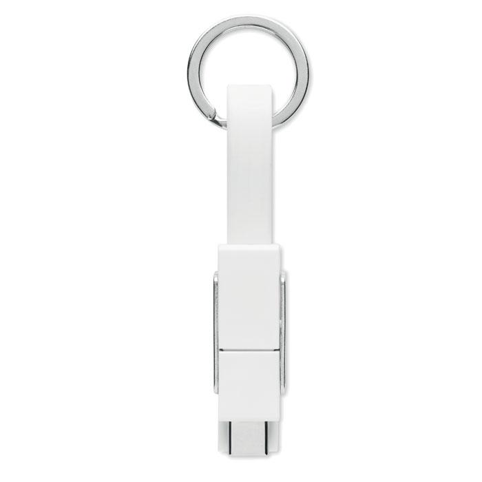 Porte-clés avec câble de chargement 4-en-1 câble de chargement. Entrée/Sortie : Type-C x2, Type-A, Micro USB.