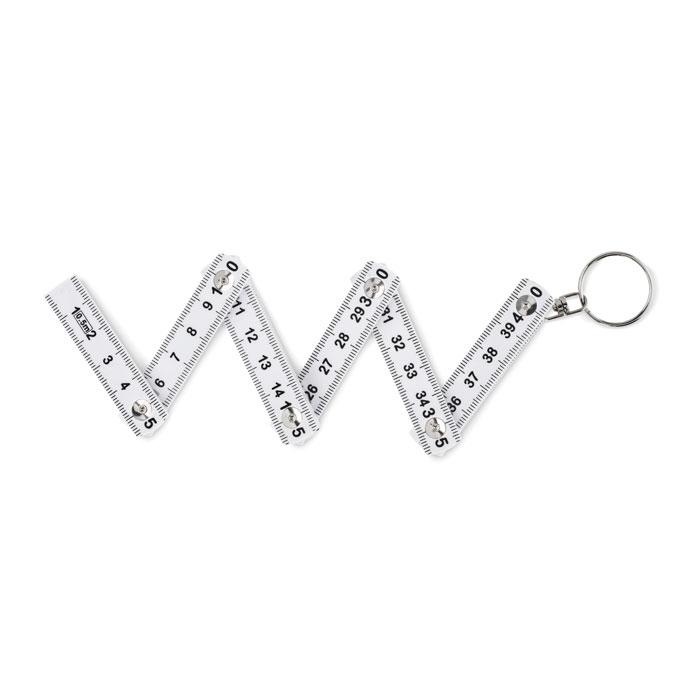 Porte-clés mètre pliant de charpentier en ABS. Longueur : 50 cm.