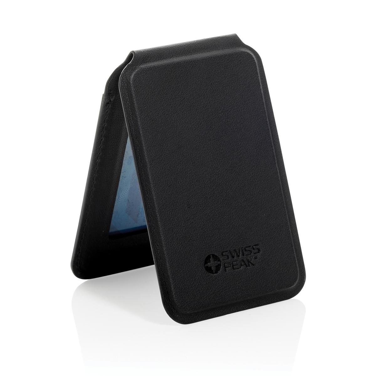 Portefeuille magnétique avec support pour téléphone fabriqué en PU recyclé RCS et conçu pour les styles de vie modernes conçu pour s'adapter parfaitement aux téléphones dotés de fonctions magnétiques. Voici la fusion ultime de la commodité et du style. Dites adieu aux poches encombrantes et à la recherche de cartes - cet accessoire élégant vous permet de garder vos objets essentiels à portée de main tout en se transformant sans effort en support pour une utilisation mains libres. Avec son design minimaliste, il peut accueillir deux cartes, offrant juste ce qu'il faut de rangement sans sacrifier l'élégance. Que vous soyez en déplacement ou que vous vous détendiez à la maison, cet accessoire polyvalent vous permet d'avoir toujours votre téléphone et vos cartes à portée de main. Il suffit de retourner le portefeuille pour le transformer en un support solide, offrant un angle de vision parfait pour votre appareil. Contenu recyclé total : 5 % sur la base du poids total de l'article.