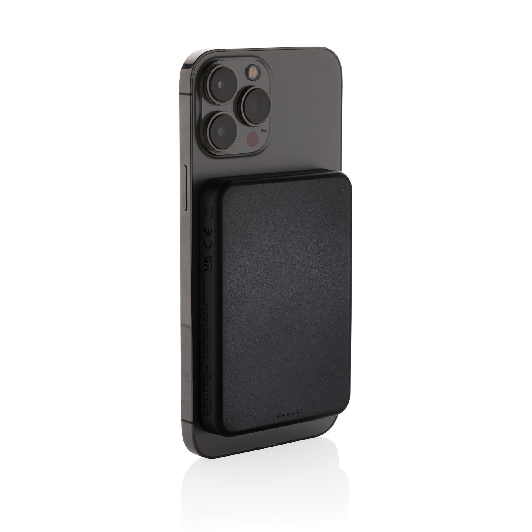 Batterie de secours 5000 mAh avec chargeur magnétique sans fil de 5 W. Le boîtier est fabriqué en plastique ABS recyclé certifié RCS. Le RCS (Recycled Claim Standard) est une norme qui permet de vérifier le contenu recyclé d'un produit tout au long de la chaîne d'approvisionnement. Contenu recyclé total : 20 % sur la base du poids total de l'article. Le powerbank contient une batterie lithium-polymère longue durée de classe A de 5 000 mAh. Les indicateurs de puissance indiquent le niveau d'énergie restant pour que vous sachiez toujours quand recharger. ; Entrée Type-C 5V/2,4A ; Sortie Type C:5V/2A.4A L'article et les accessoires sont exempts de PVC. Câble de recharge en TPE recyclé certifié RCS inclus. Emballé dans un emballage FSC® mix.