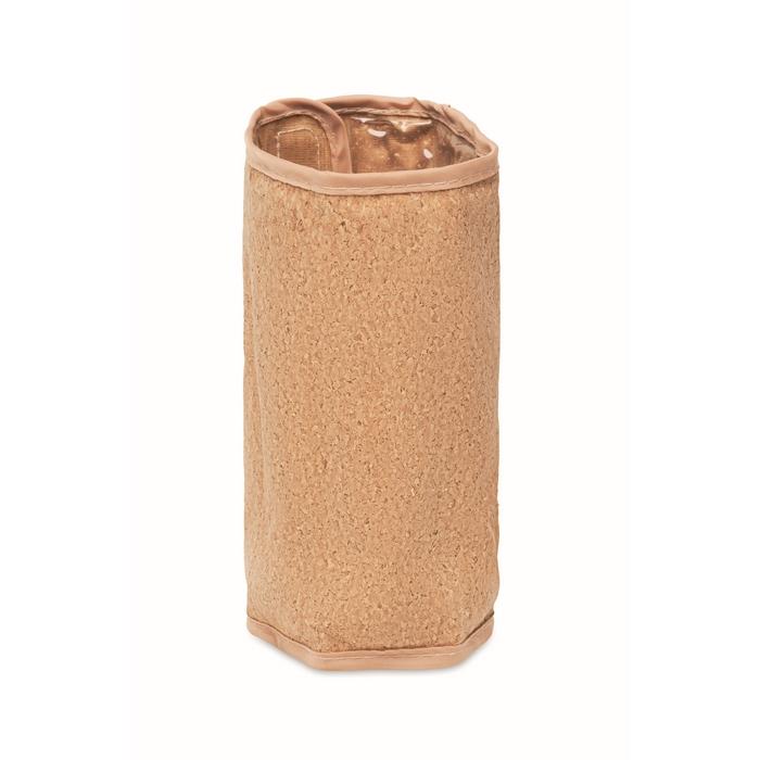Rafraîchisseur à bouteille souple en liège avec feuille de PVC et gel à l'intérieur. Il est doté d'une fermeture par bande auto agrippante. Le liège est un matériau 100% naturel. En raison de sa structure et de la porosité de sa surface, le résultat final de l'impression par article peut présenter des différences.