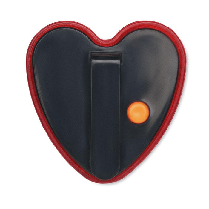 Lampe rouge à réflecteur en forme de cœur en ABS avec clip arrière. Deux modes d'éclairage : lumière vive/clignotante. Comprend 2 piles LR44 remplaçables.