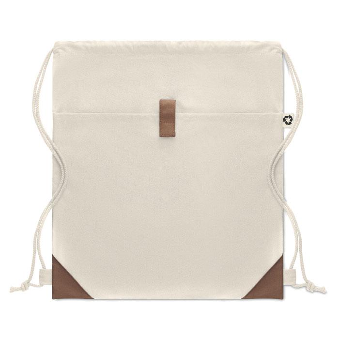 Sac à cordon en coton recyclé avec cordons naturels 50% coton et 50% coton recyclé. 220 gr/m².