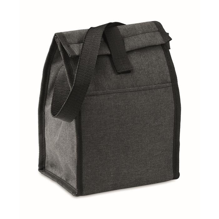 Sac à déjeuner isotherme en RPET 600D avec poche frontale. Capacité 3L. Matériau d'isolation : mousse PE de 2 mm avec feuille d'aluminium.