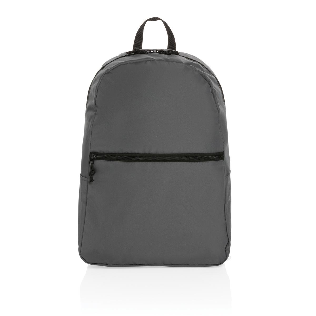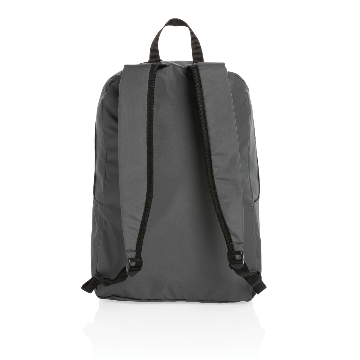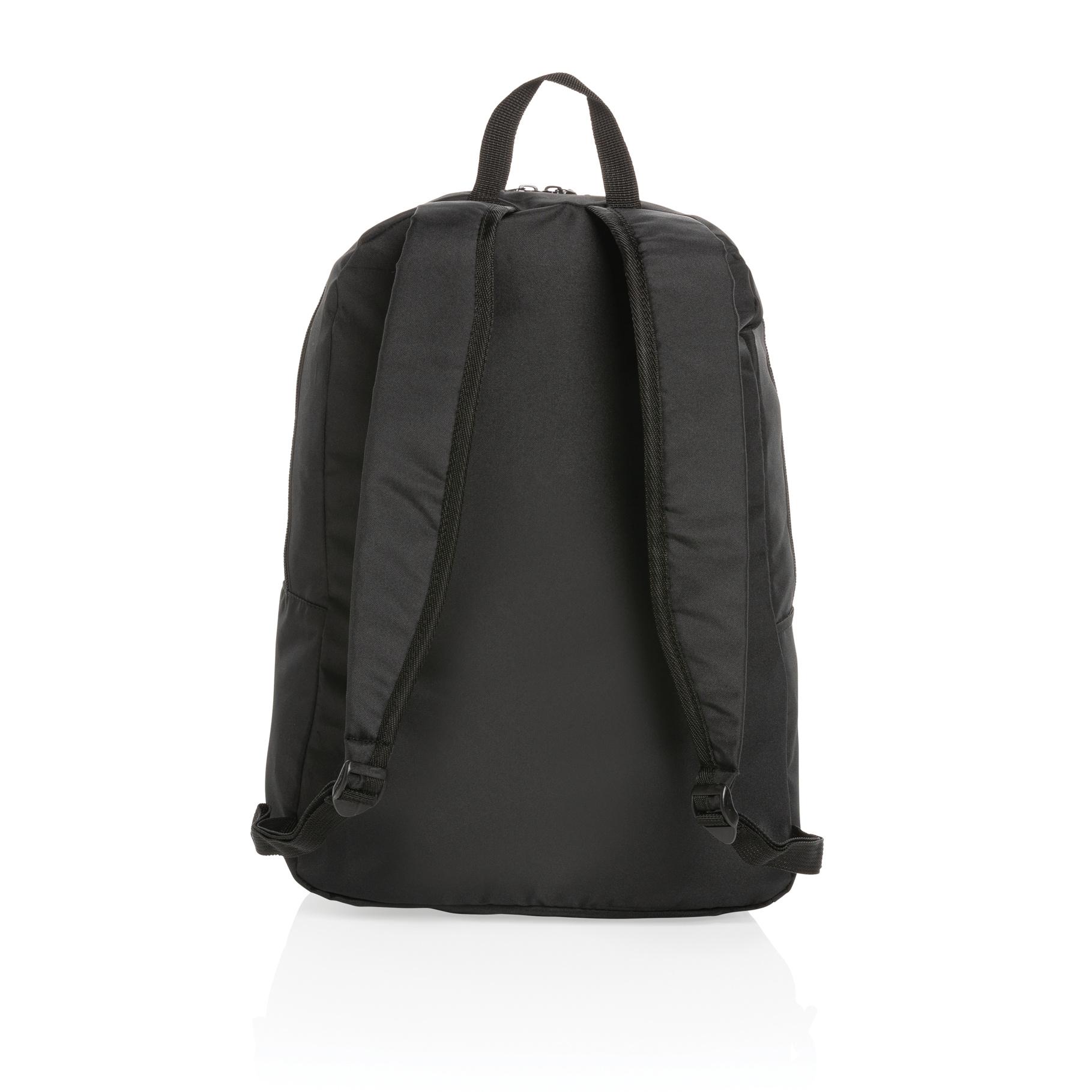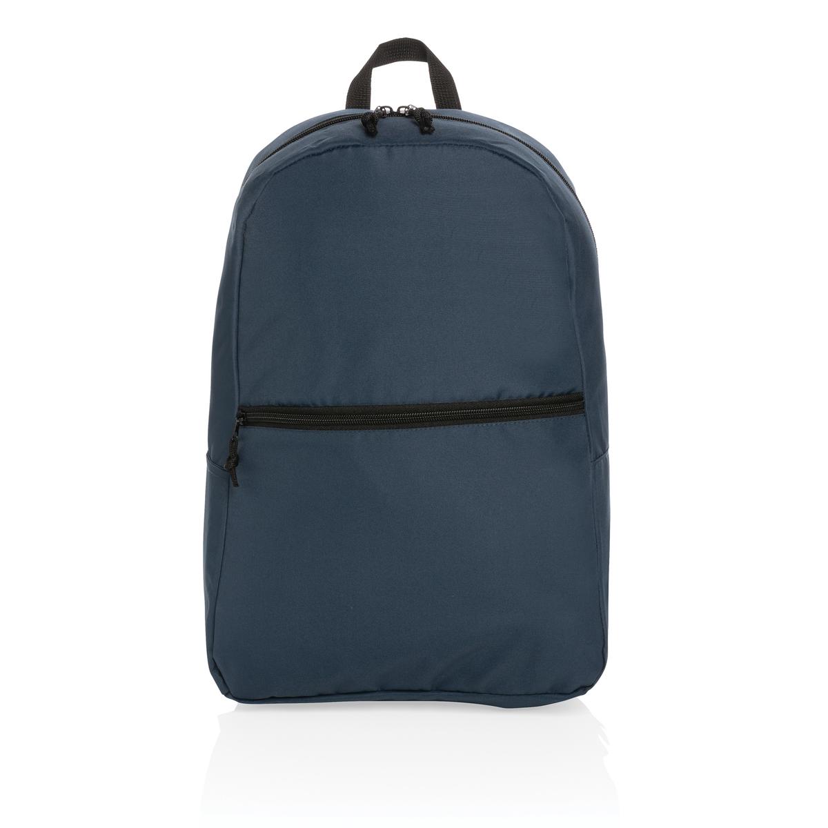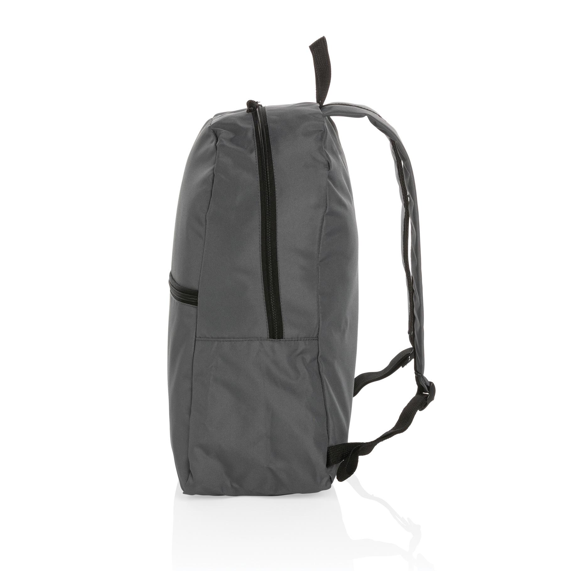 Sac à dos en 300D rPET. Poche avant zippée. Ce sac à dos a réutilisé 11,5 bouteilles PET de 500 ml et économisé 6,85 litres d'eau.