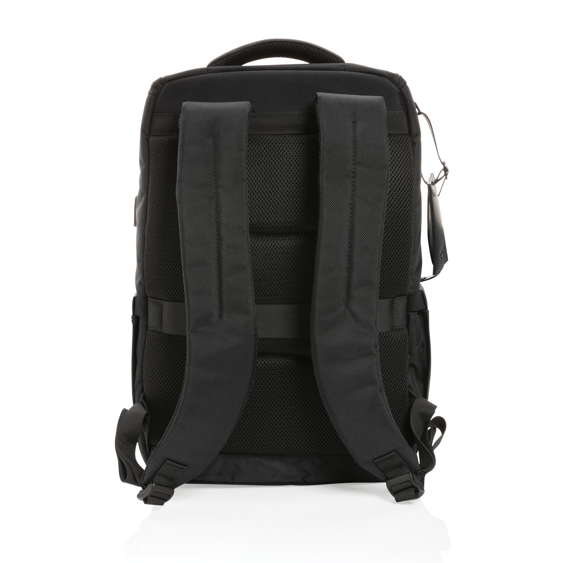Sac à dos fabriqué à partir de tissu durable 1680D en polyester recyclé avec de riches détails PU et dispose d'une forme bien conçue avec plusieurs poches pour le rangement et l'organisation. En plus du spacieux compartiment principal, ce sac à dos dispose d'une poche rembourée pour ordinateur portable de 15,6" et d'une poche supplémentaires pour vos objets essentiels. Ce sac contient aussi une sortie USB, des poches anti RFDI, des poches à stylos, une étiquette de bagage amovible et une poche à bouteille d'eau. L'extérieur : 100% 1680D polyester, doublure : 150D polyester recyclé. Avec traceur AWARE™ qui prouve l'utilisation réelles des matériaux recyclés. Chaque sac permet d'économiser 29,8L d'eau et a réutilisé 49,92 bouteilles en PET 0,5L. 2% de chaque produit IMPACT vendu sera reversé à Water.org.