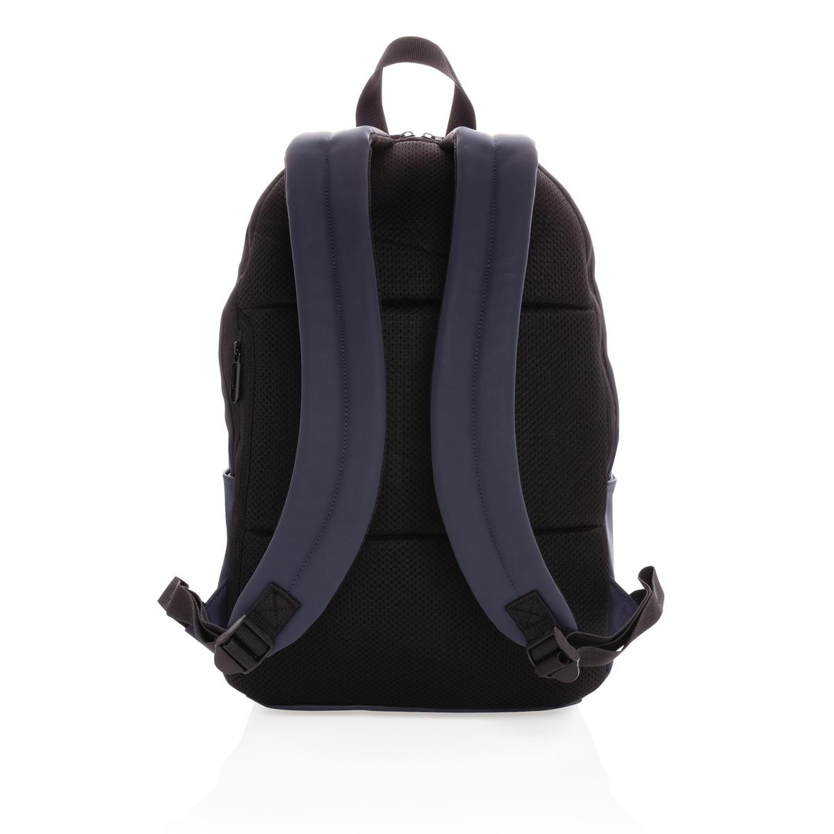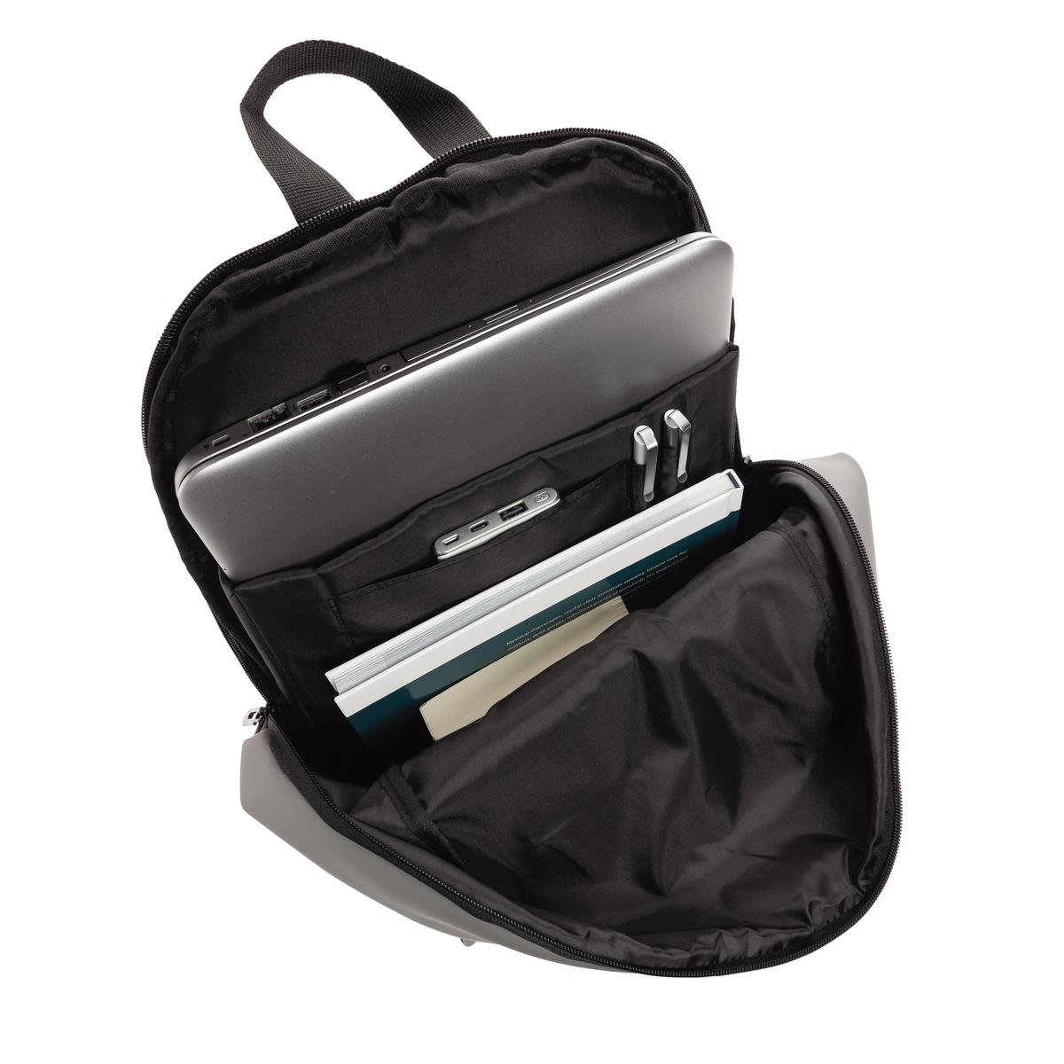 Ce sac à dos minimaliste et moderne en PU lisse. Entièrement doublé, compartiment pour ordinateur portable 15,6 pouces, grand compartiment principal, 2 poches intérieures et 2 passants stylos. Dos rembourré en mesh et bretelles ajustables. Extérieur 100% PU. Intérieur 100% polyester 210D. Sans PVC.