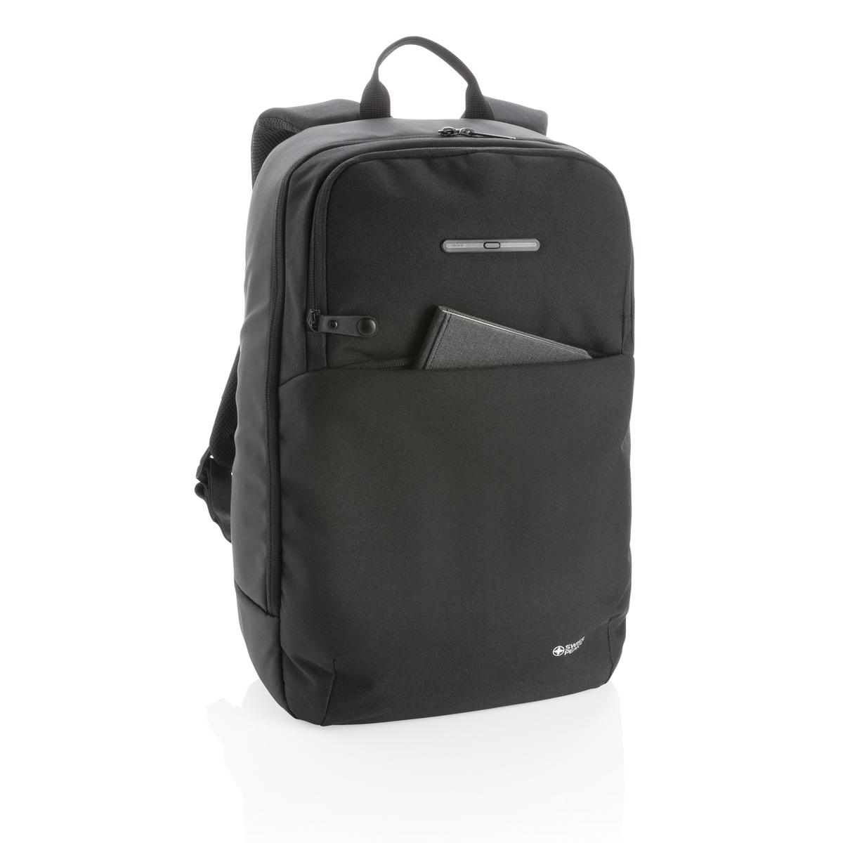 Sac à dos ordinateur Swiss Peak avec poche de stérilisation UV-C. Design minimaliste. Poche frontale externe de stérilisation UV-C intégrée, tuant jusqu'à 99,9% des bactéries sur les articles placés à l'intérieur de la pochette. Parfait pour désinfecter vos clés et votre téléphone en trois minutes lors de vos déplacements. Les trois lampes LED UV-C à l'intérieur sont non toxiques et sans mercure. Conçu afin de garantir que la lumière LED UV-C s'éteint automatiquement lorsque la poche de stérilisation est ouverte afin que l'utilisateur ne soit pas exposé à la lumière UV-C. Compartiment pour ordinateur portable 15,6 pouces, 2 poches ouvertes et 2 passants stylos. Dos et bretelles rembourrés en mesh pour plus de confort. Câble micro USB inclus. Extérieur en polyester enduit PU 600D et 900D. Intérieur en polyester 210D. Conforme à EN62471. Sans PVC.