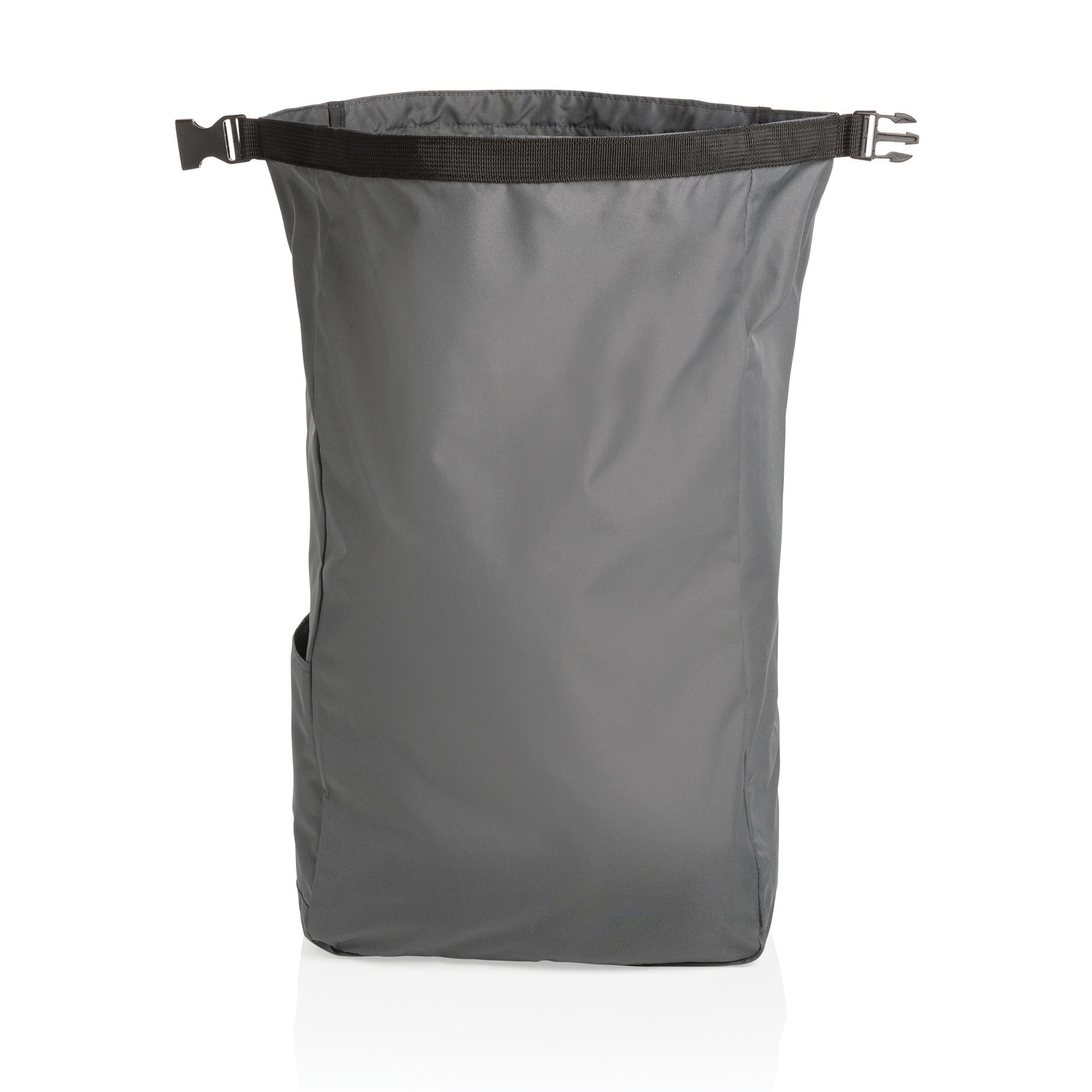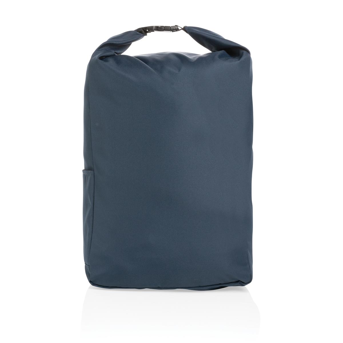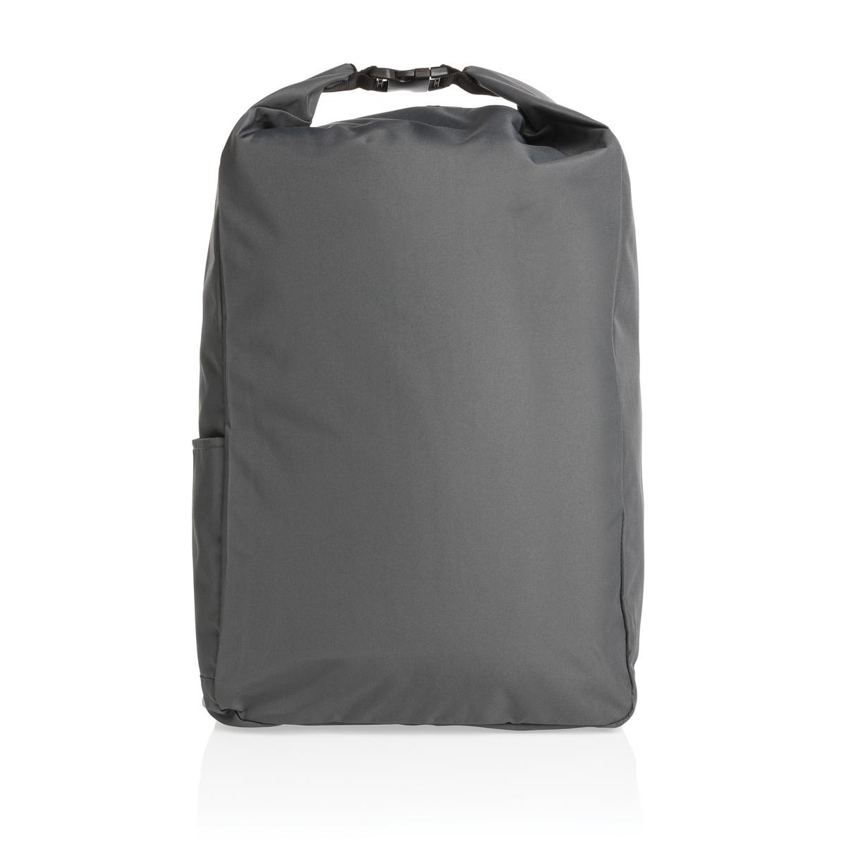 Sac à dos rolltop en 300D rPET. Ce sac à dos a réutilisé 11,6 bouteilles PET de 500 ml et économisé 6,92 litres d'eau.