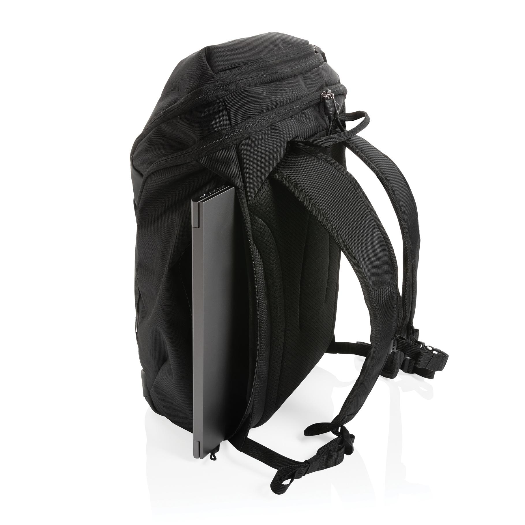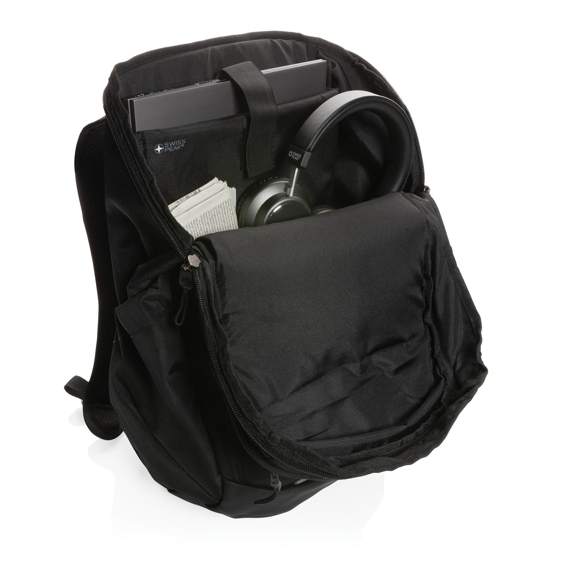 Sac à dos business Swiss Peak AWARE™ RPET 15.6” résistant au intempéries. Il dispose d'un compartiment principal spacieux et d'un accès rapide à votre ordinateur portable via la fermeture à zip latérale. Confortable à porter grâce aux bretelles profilées et respirantes, au dos rembourré et à la sangle thoracique entièrement réglable. Une poche à fermeture à zip sur le dessus pour tous vos objets essentiels quotidiens. L'extérieur est fait de polyester recyclé PU et 1200D. La doublure est faite de 100% polyester recyclé 150D. Avec traceur AWARE™ qui prouve l'utilisation réelles des matériaux recyclés. Chaque sac permet d'économiser 22,7L d'eau et a réutilisé 38,19 bouteilles en PET 0,5L. 2% de chaque produit IMPACT vendu sera reversé à Water.org.