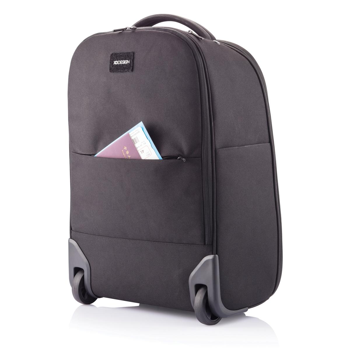 Trolley Bobb, fabriqué à partir de matériaux recyclés rPET et avec traceur AWARE™ , est votre compagnon de voyage idéal pour les petits trajets ou les déplacements quotidiens. Transformez-le facilement de sac à dos en trolley, en rangeant les bretelles dans le panneau arrière et en relâchant la poignée. Lorsque vous passez en mode sac à dos, vous pouvez cacher la poignée et enrouler le sac à dos autour des roues, ce qui permet de garder votre dos propre. Le Trolley Bobby vous permet de rester en sécurité et connecté grâce aux fonctions antivol bien connues du Bobby, combinées à un verrou TSA®. À l'intérieur, vous trouverez des compartiments séparés pour vos vêtements et appareils professionnels, ainsi qu'une pochette pour ordinateur portable à accès rapide qui s'ouvre à un angle de 30 degrés et qui peut accueillir un ordinateur portable de 17 pouces. En plus, vous disposez d'une pochette pour bouteille d'eau et d'une pochette protégée anti- RFID. Modèle déposé ®