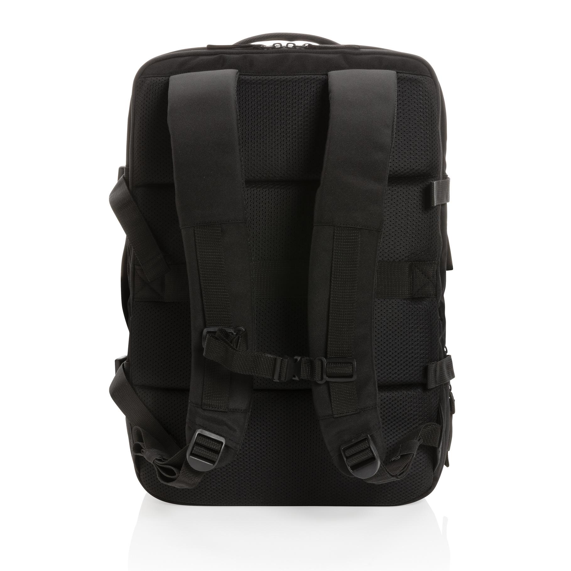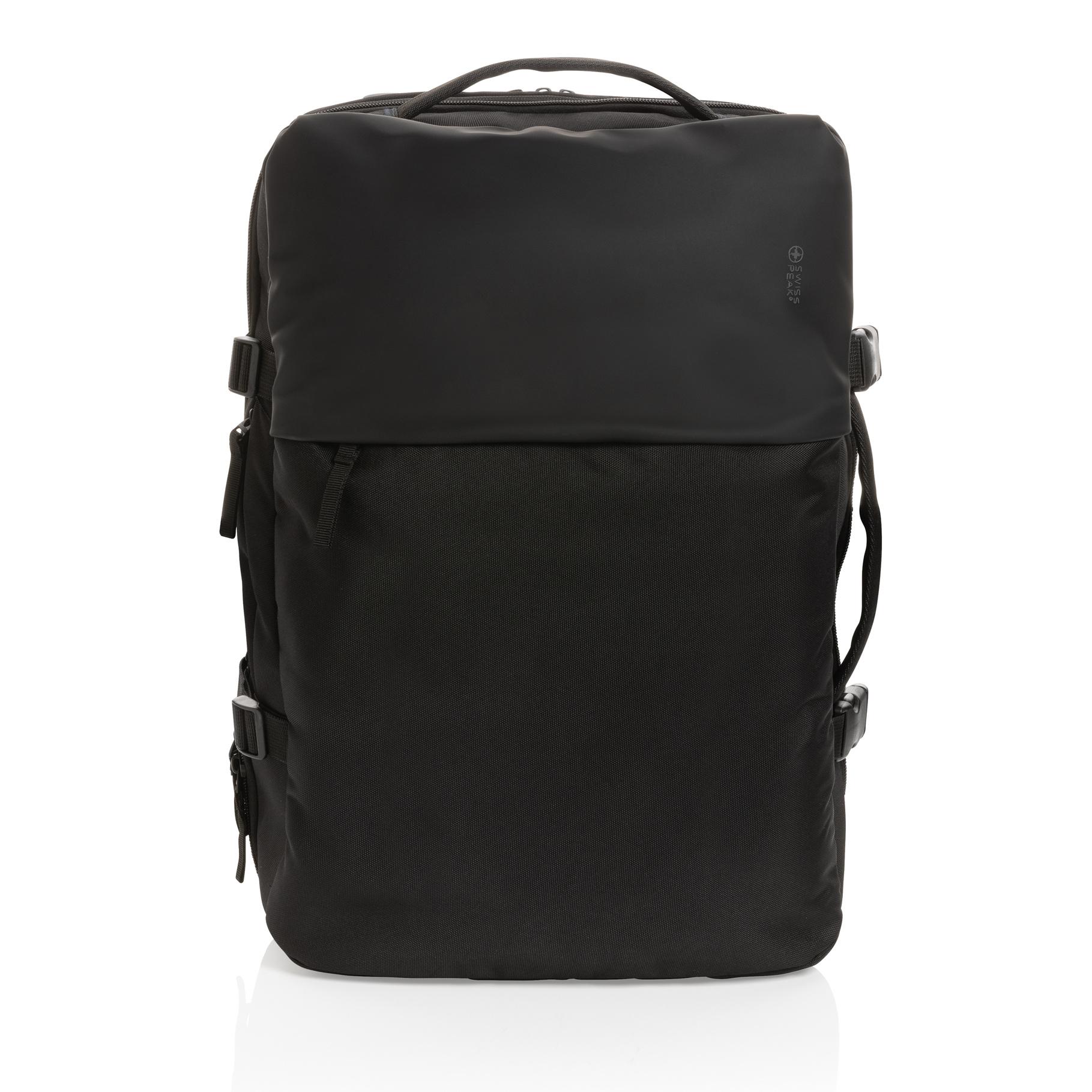 Le sac à dos week-end extensible Swiss Peak en rPET AWARE™ permet de transporter votre ordinateur portable de 15,6 pouces dans un compartiment conçu pour un contrôle rapide et facile à l'aéroport. Son compartiment principal extensible augmente la capacité de plus de 35% pour les voyages plus longs. Les sangles de compression latérales sécurisent et stabilisent le contenu pour faciliter le transport. Rangements pour les chargeurs, les câbles et autres éléments essentiels. Avec une sangle de transport. Avec traceur AWARE™ qui valide l'utilisation authentique de matériaux recyclés. Chaque sac a réutilisé 38,4 bouteilles PET de 0,5L. 2 % des recettes de chaque produit Impact vendu seront reversés à Water.org. Sans PVC.