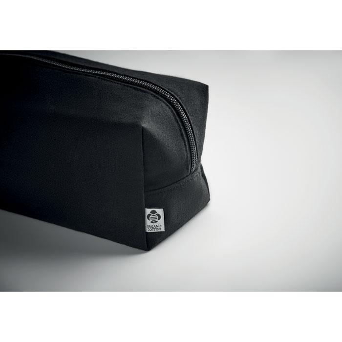 Sac à cosmétiques avec une fermeture éclair en toile biologique 220 gr/m². La doublure est en coton biologique de 140 gr/m².