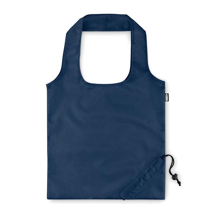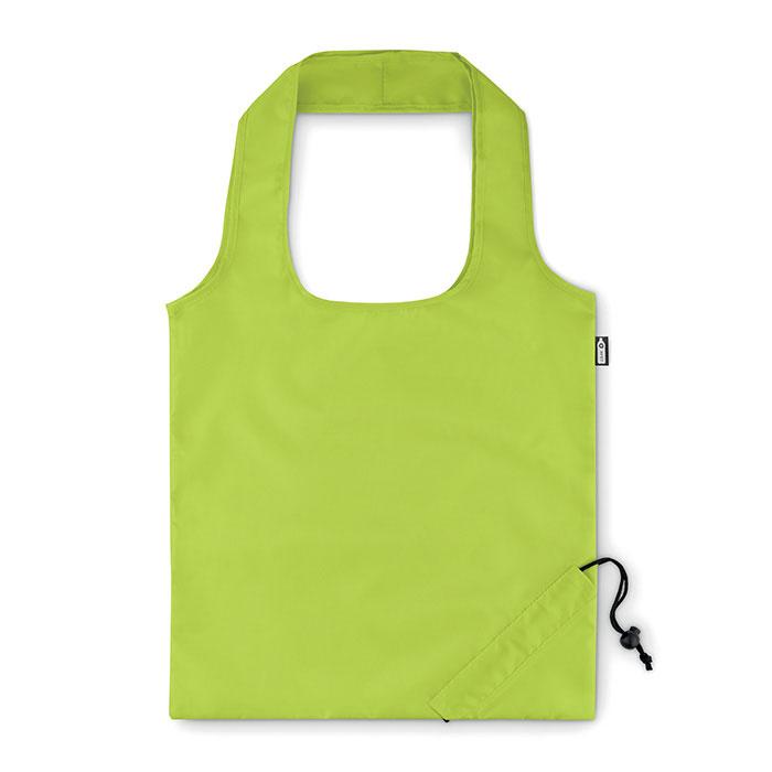 Sac shopping pliable en 190T en RPET avec cordon de serrage sur la poche.