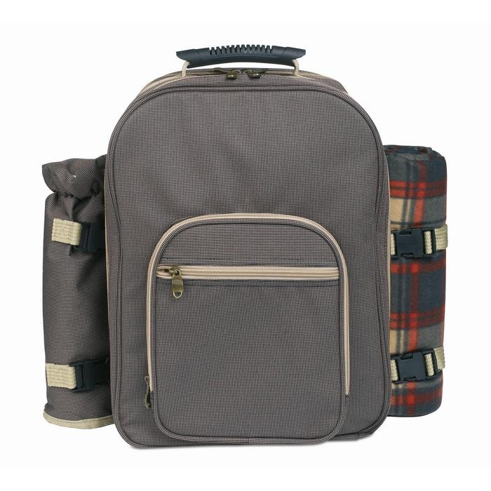 Sac (600D) de pique-nique pour 4 personnes. Inclus: Couverture, porte bouteille et accessoires de table de qualité.