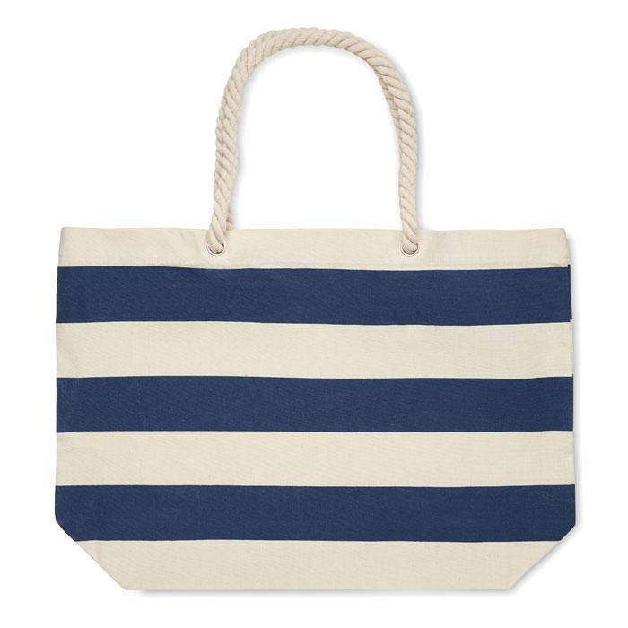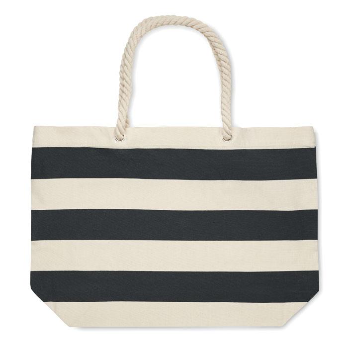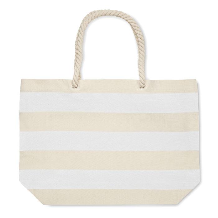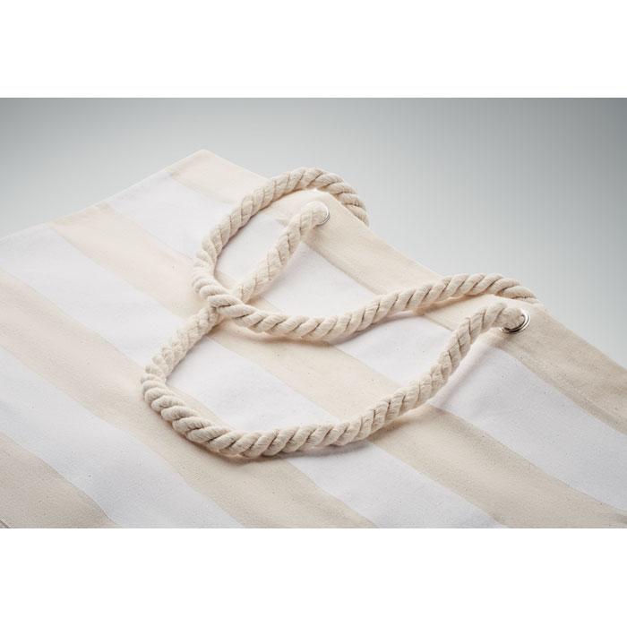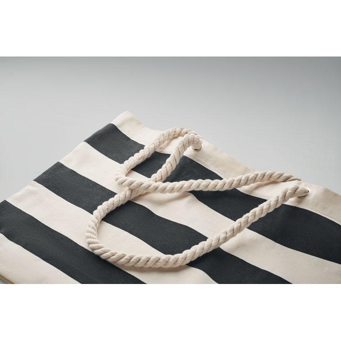 Sac de plage ou de shopping rayé en coton avec anses en corde. 220 gr/m².