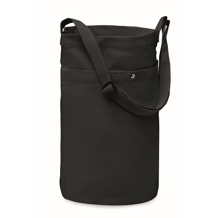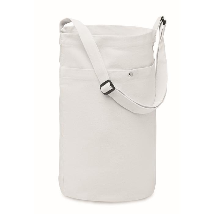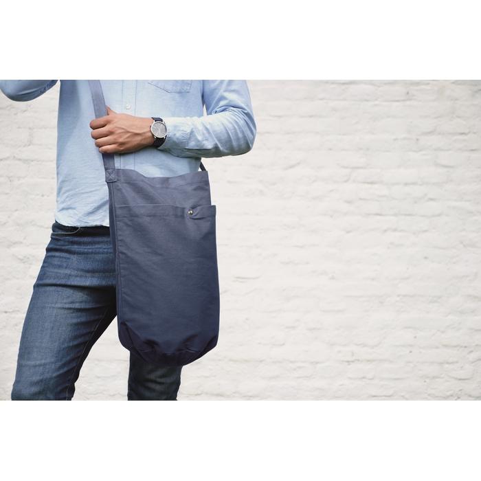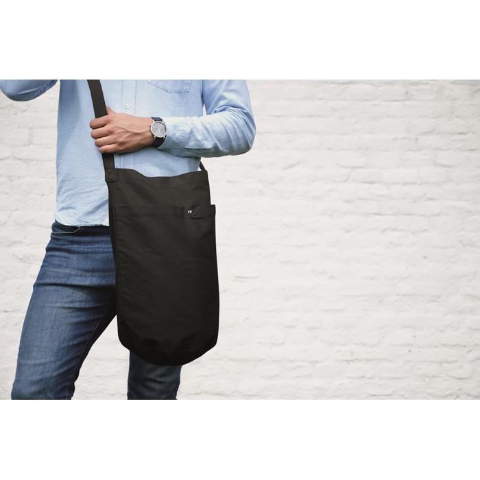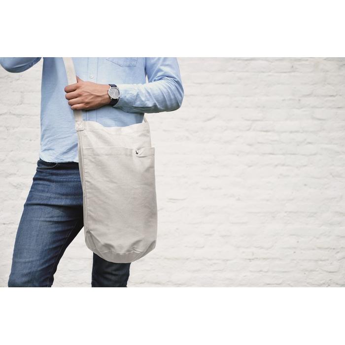Sac en toile avec une longue bandoulière réglable et une grande poche frontale avec fermeture à bouton-pression. Comprend une poche intérieure. 270 gr/m².
