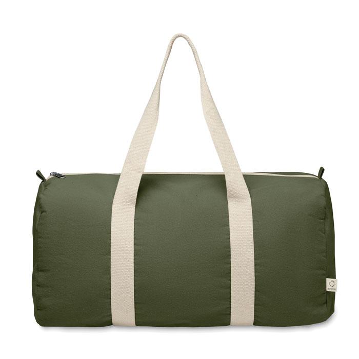 Sac de sport ou de voyage avec compartiment latéral zippé et poche intérieure zippée en coton recyclé (80%) et polyester recyclé (20%) de 320 gr/m² avec longues poignées.