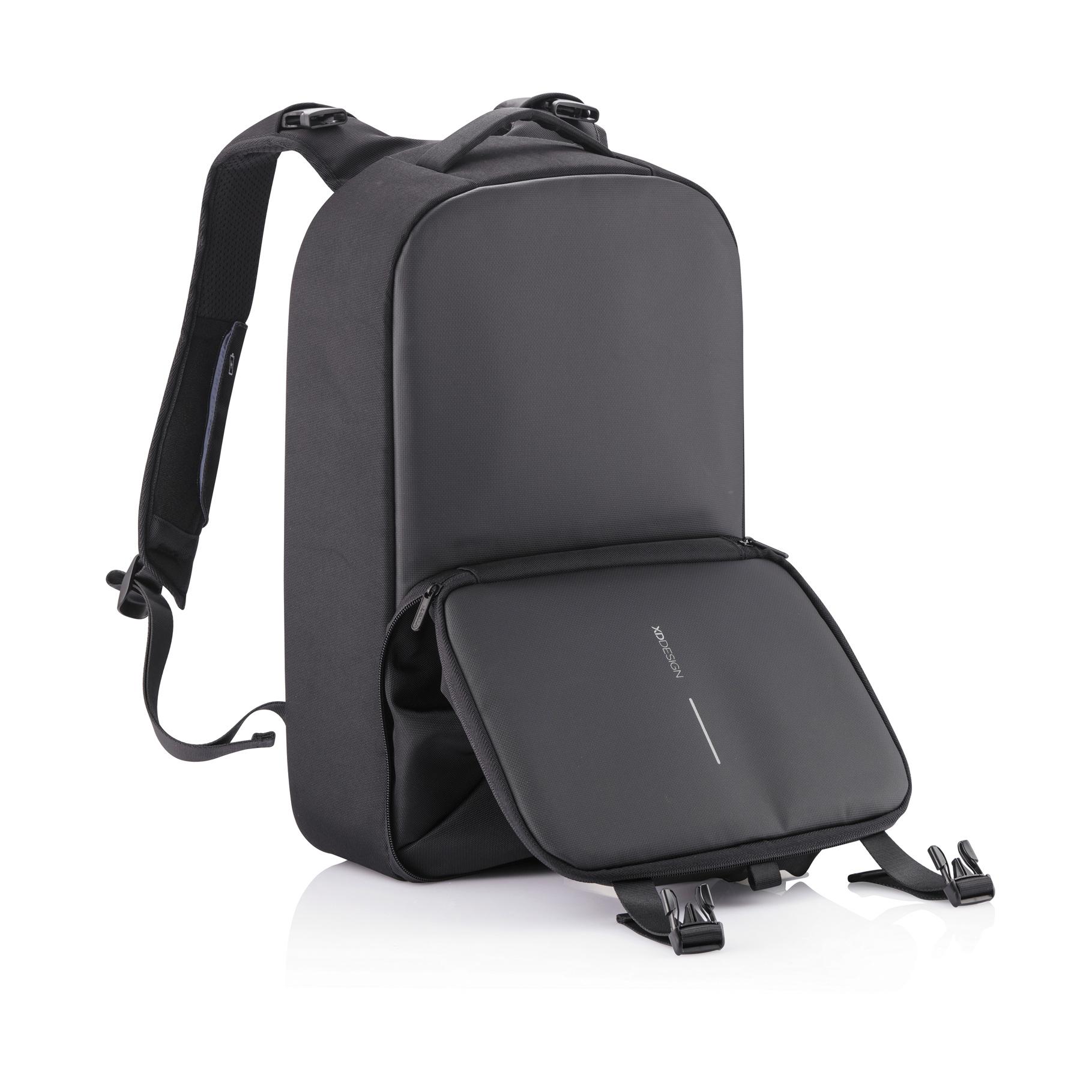 Flexible et pratique, le sac de sport XD Design Flex est le premier sac à dos et sac de sport en un, facile à transformer en agrandissant simplement la poche avant, de 16 à 24 litres. La conception antivol sans accès frontal, les fermetures à zip dissimulées dans le compartiment principal vous permettront de transporter vos affaires professionnels en toute sécurité, et la poche au dos protégée par anti-RFID vous permettra de ranger en toute sécurité votre portefeuille, votre téléphone portable ou vos cartes de crédit. En outre, ce sac à dos vous permet de charger votre telephone grâce à un port USB situé sur la bandoulière, où vous trouverez également un porte-lunettes de soleil. Fabriqué à partir de RPET avec la technologie Aware®. Le sac à dos idéal, que vous vous rendiez au travail, à l'université ou à la salle de sport. 42% de contenu recyclé. Modèle déposé®.