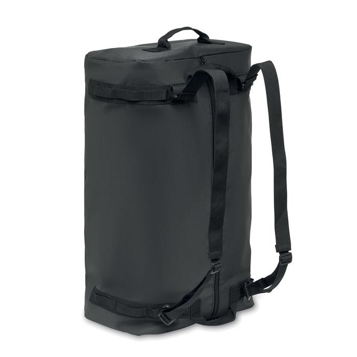 Grand sac de sport ou de voyage pouvant également être utilisé comme sac à dos, en tarpaulin 50C avec compartiment intérieur zippé. Il est doté d'une bandoulière détachable et réglable et d'une doublure en RPET.
