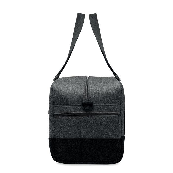 Sac de sport/fitness ou de week-end en feutre RPET avec poche frontale zippée, poignées en toile et bandoulière réglable amovible.