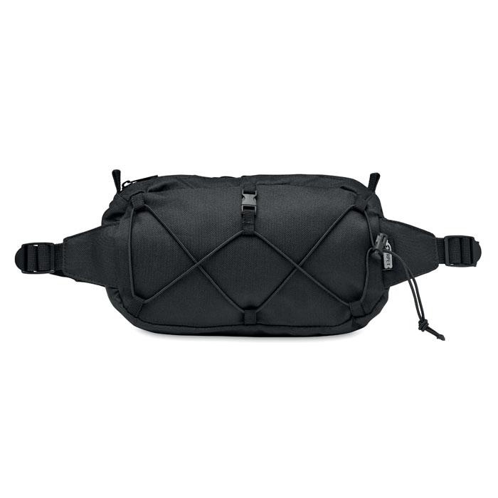 Sac banane en polyester RPET 600D avec compartiment principal zippé et sangle de taille réglable. Comprend une poche intérieure.