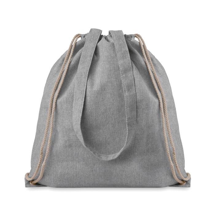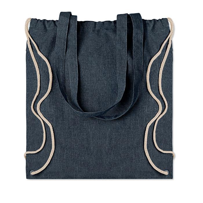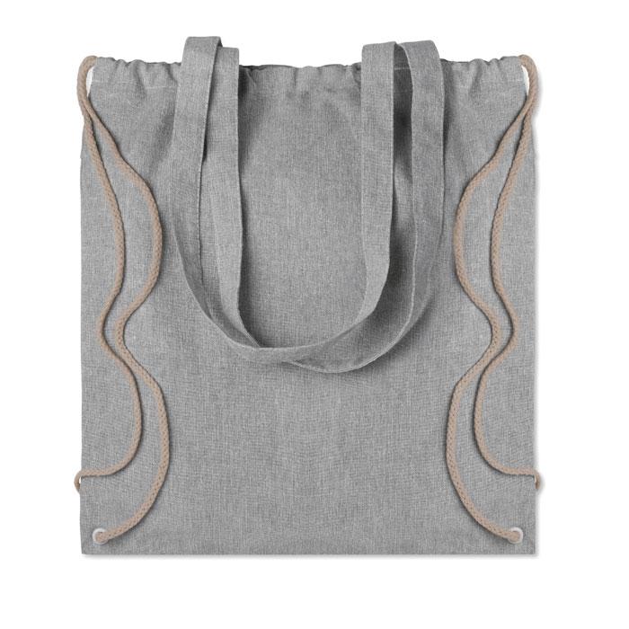 Sac shopping 2 tons en coton et polyester recyclés avec cordon de serrage et anses longues. Environ 140 gr/m² (20%/80%). Environ 140 gr/m². Cet article peut rétrécir après avoir imprimé.