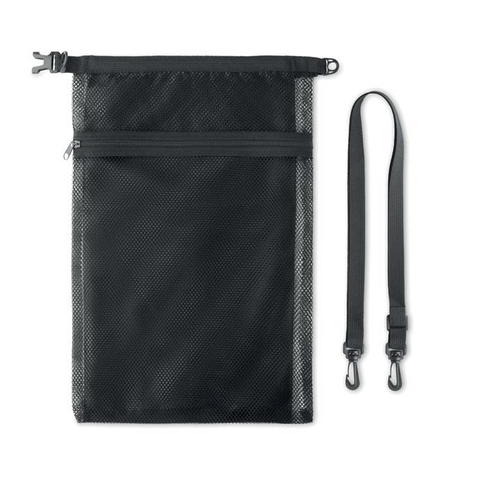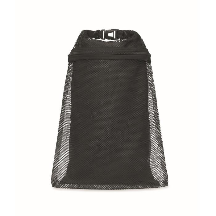 Sac imperméable en RPET 210D avec fermeture éclair et filet en RPET. Capacité : 6L.