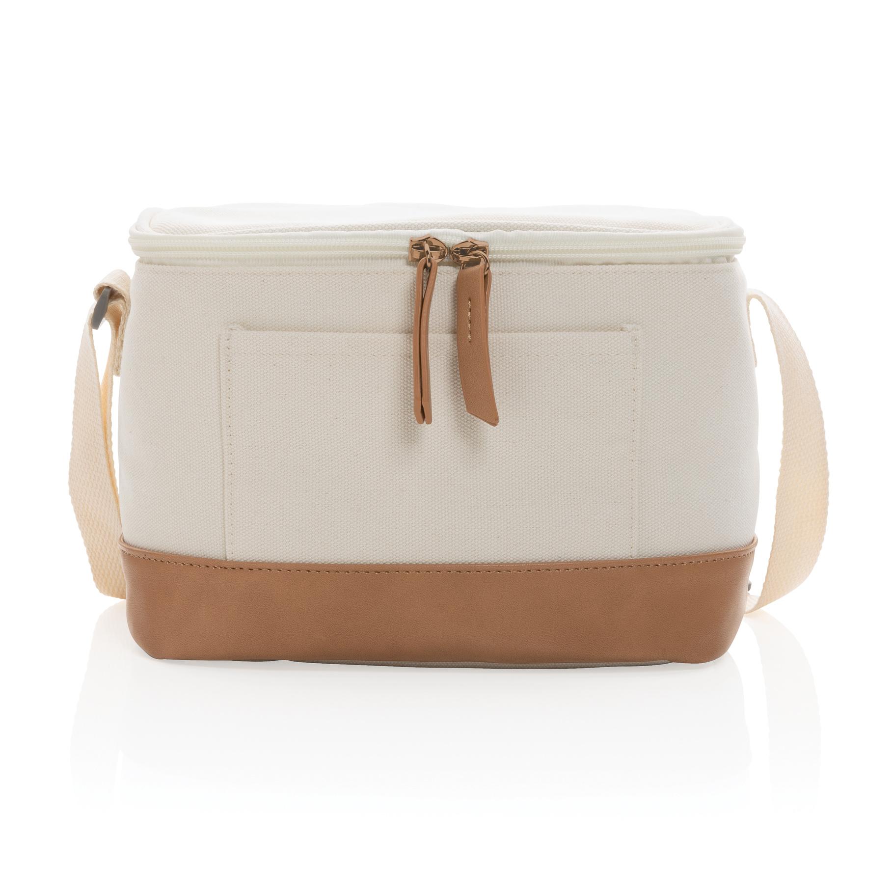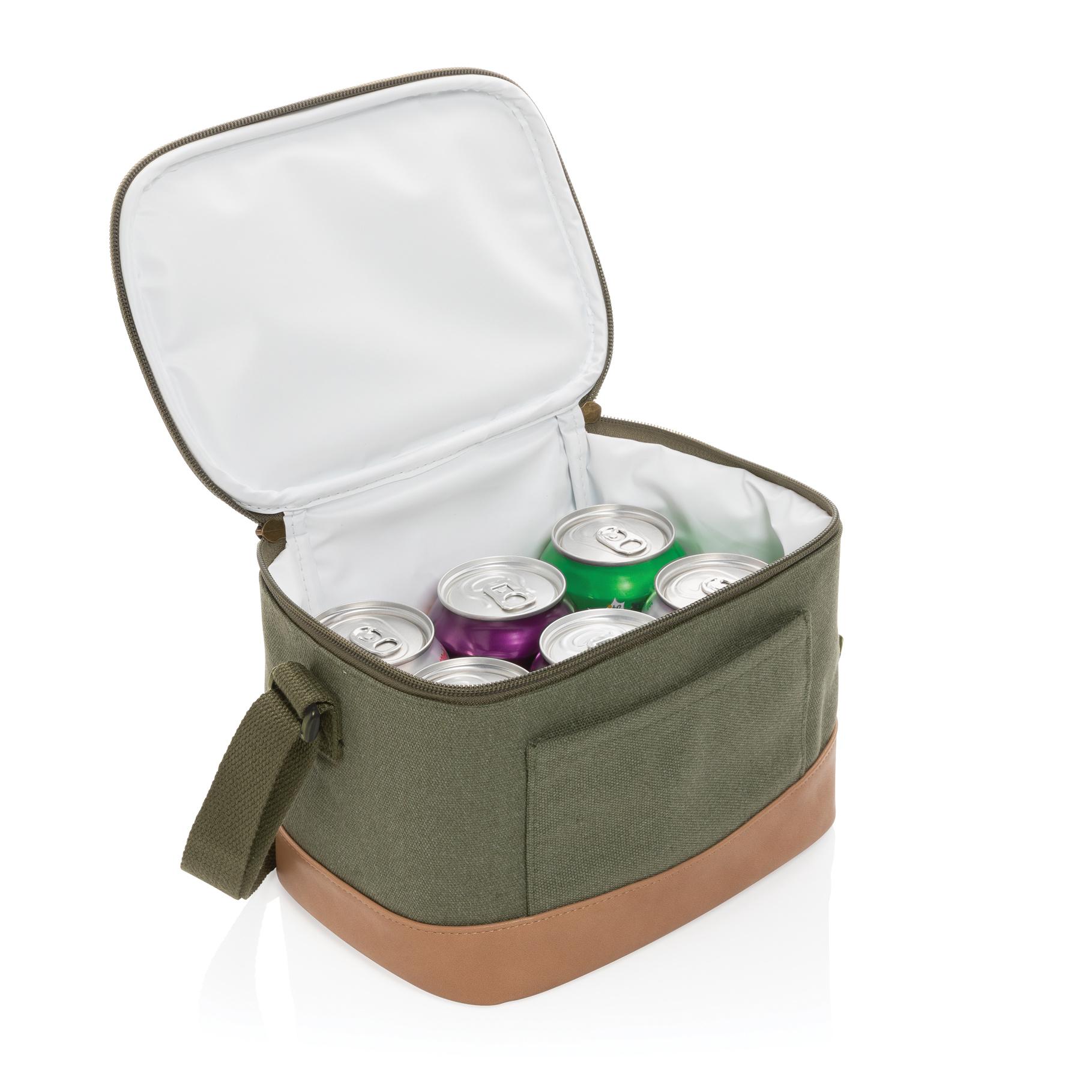 Sac en toile composé de 60% coton recyclé et 40% polyester recyclé avec détails PU et doublure en PEVA. Avec une poche avant ouverte et une poignée pour un transport facile. Le traceur AWARE™ qui prouve l'utilisation authentique de la toile recyclée. Permet de stocker jusqu'à 6 canettes. 2% de chaque vente de produit Impact vendu sera versée en don à Water.org.