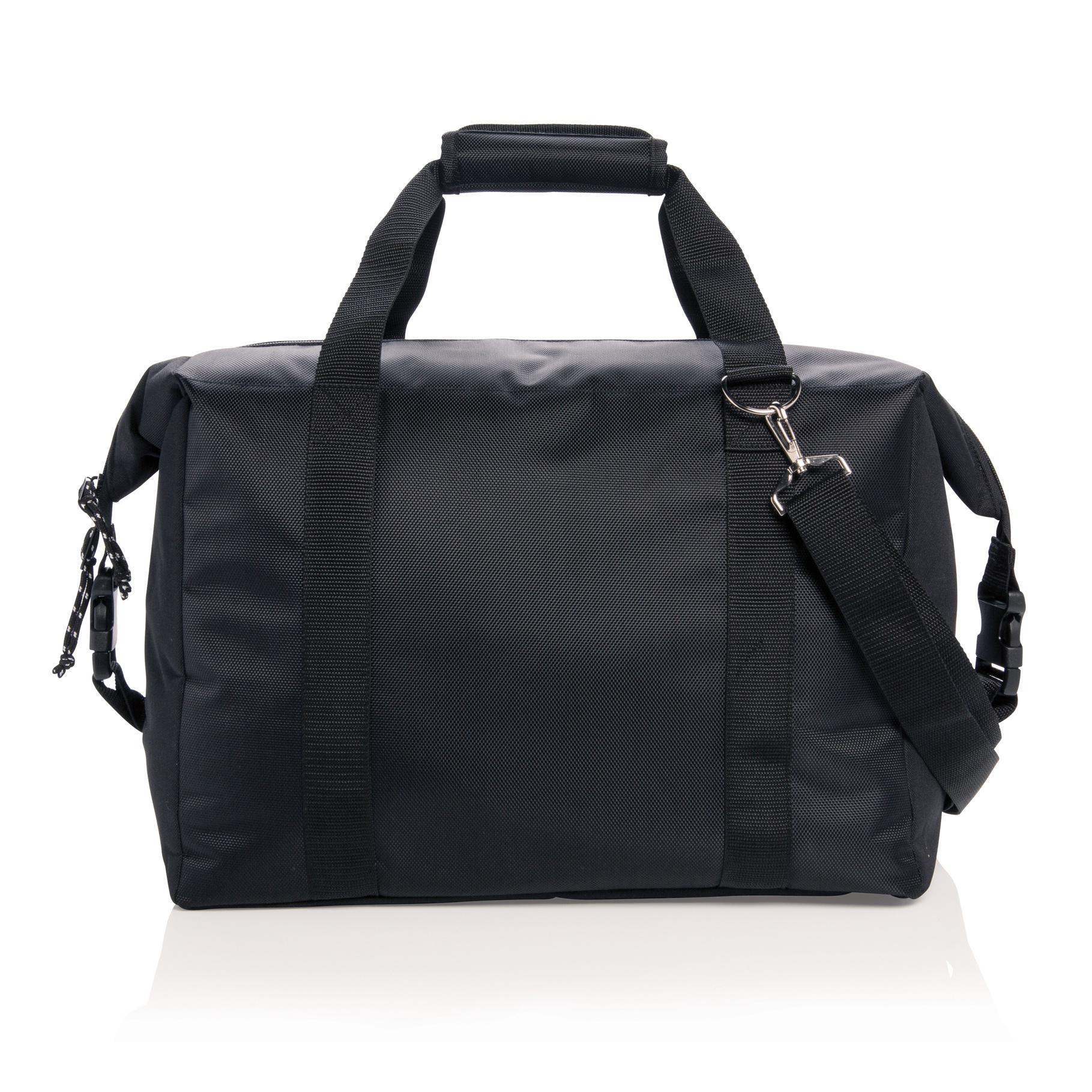 Sac isotherme fourre-tout en polyester 1680D et 600D, avec grand compartiment principal et poche frontale zippée. Se transforme facilement en cabas en fermant les sangles latérales. Contenance de 40L soit jusqu’à 10 bouteilles de 1,5L. Poignées renfo