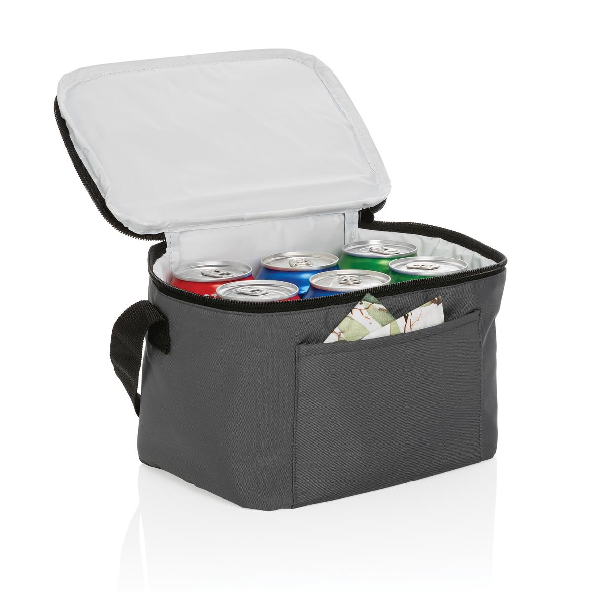 Sac format 6 canettes , poche avant et poignée de transport. En utilisant ce sac isotherme, vous avez réutilisé 3,9 bouteilles PET de 0,5 litre et 2,32 litres d'eau.