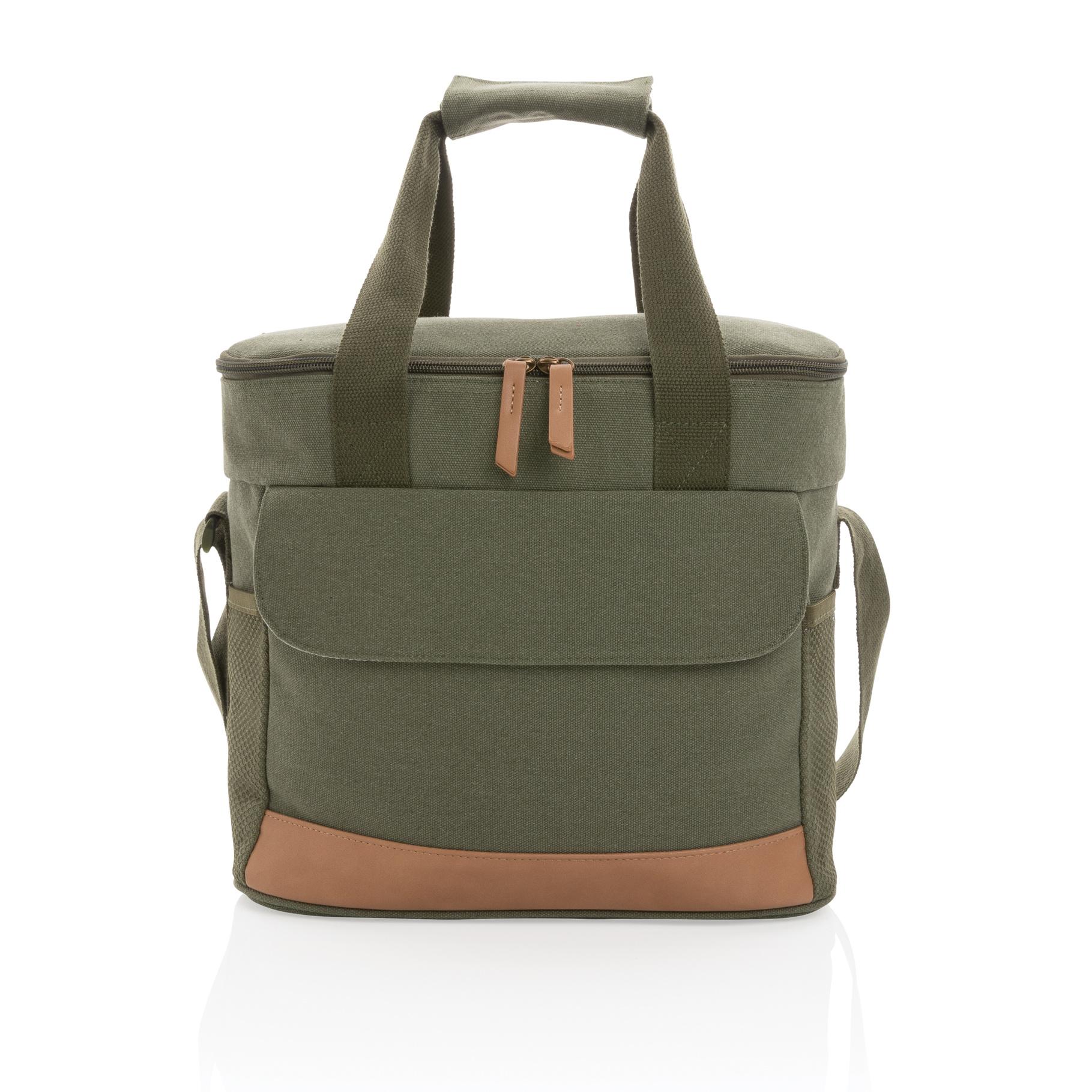 Sac en toile composé de 60% coton recyclé et 40% polyester recyclé avec détails PU et doublure en PEVA. Avec 2 poches latérales en maille et 1 poche avant pour un rangement supplémentaire. Le traceur AWARE™ qui prouve l'utilisation authentique de la toile recyclée. Permet de stocker jusqu'à 20 canettes. 2% de chaque vente de produit Impact vendu sera versée en don à Water.org.