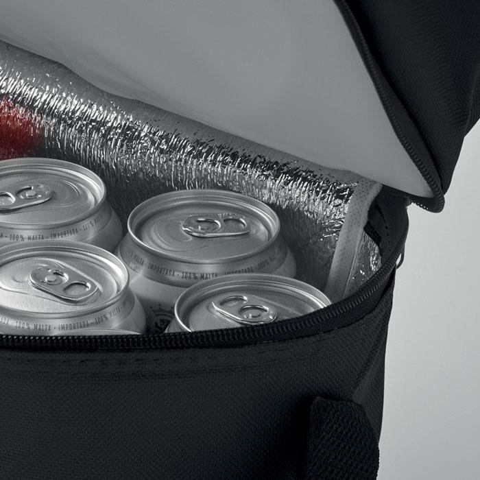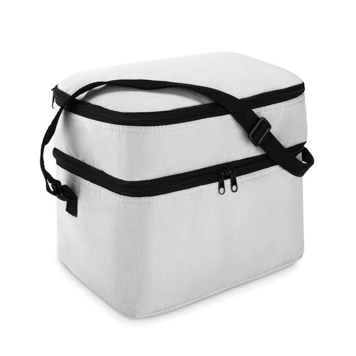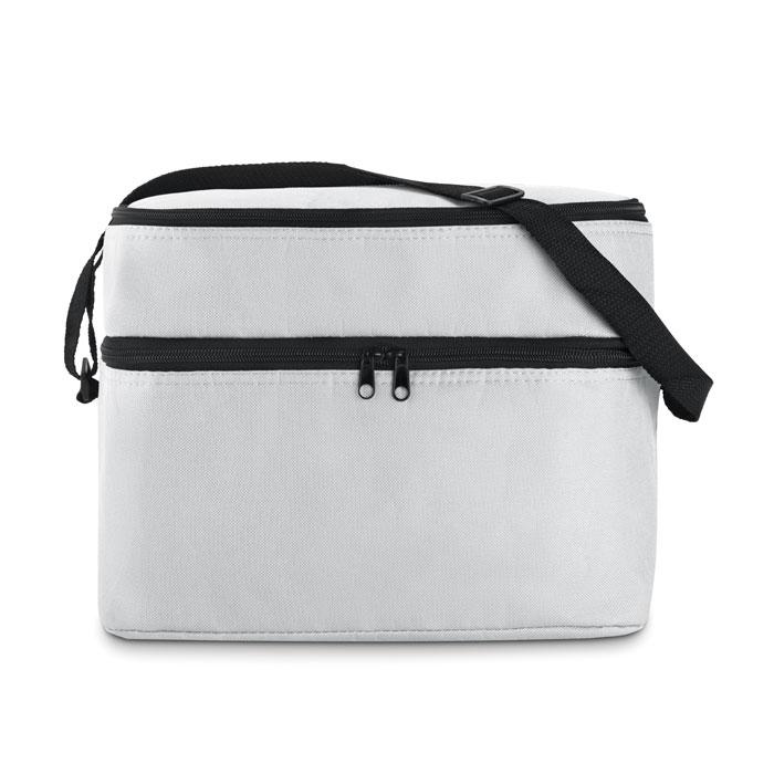Sac isotherme en 600D avec deux compartiments, bandoulière ajustable.