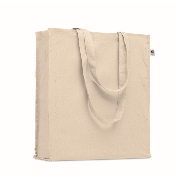 Sac shopping en coton organique avec longues anses et soufflet. 220 gr/m².