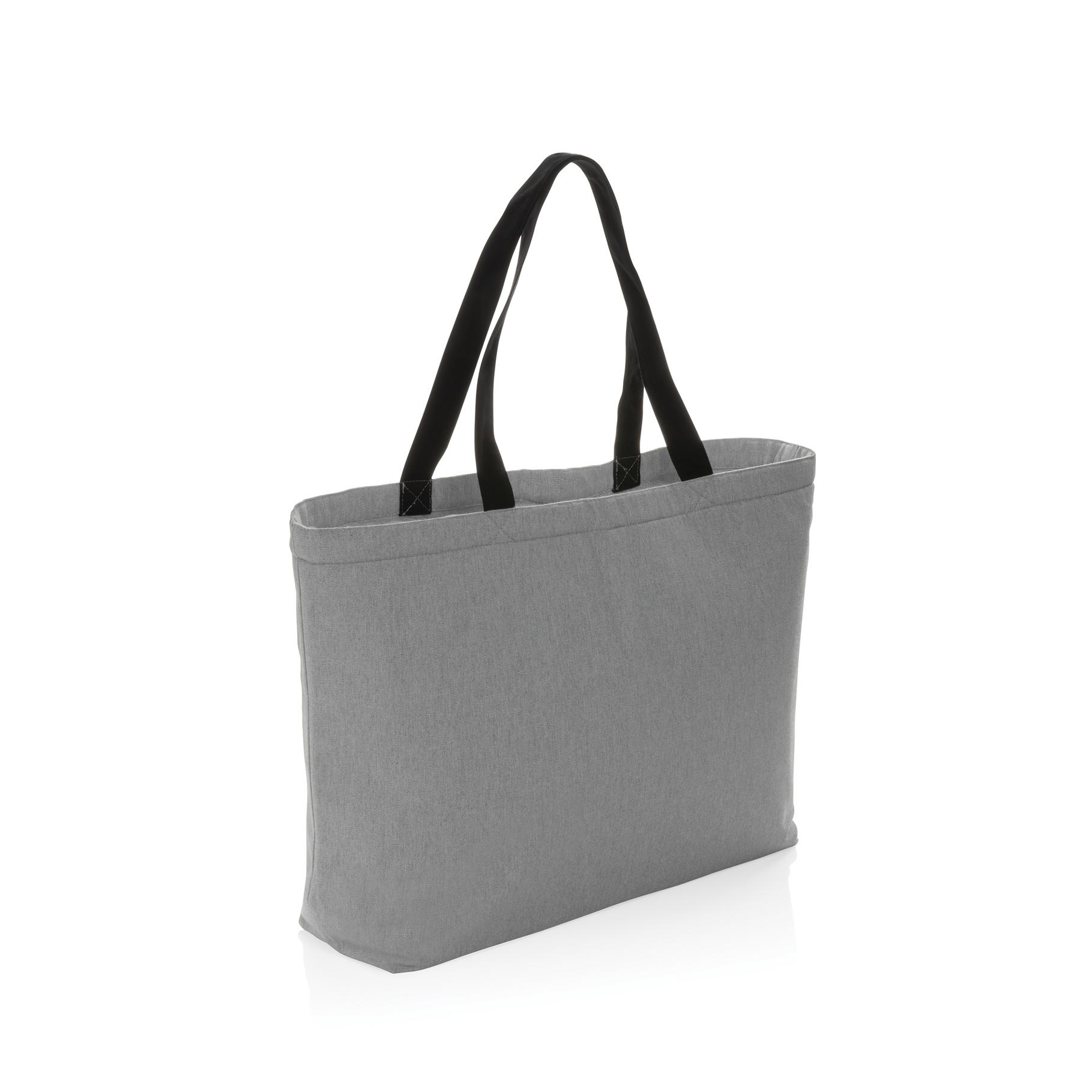 Grand sac tote isotherme en toile recyclée 285 g/m² Impact Aware™ permet de conserver au frais vos aliments et boissons préférés, des pique-niques aux voyages en voiture, puis se replie à plat pour gagner de la place. Peut contenir jusqu'à 24 canettes ou jusqu'à 6 bouteilles de vin. Avec le traceur AWARE™ qui valide l'utilisation authentique de matériaux recyclés. La toile recyclée est non teintée et utilisée à l'état brut, sans produits chimiques issus de la teinture ou du blanchiment. 2 % des recettes de chaque produit Impact vendu seront reversés à Water.org. Composition 70% coton recyclé, 30% polyester recyclé ; Isolation feuille d'argent.