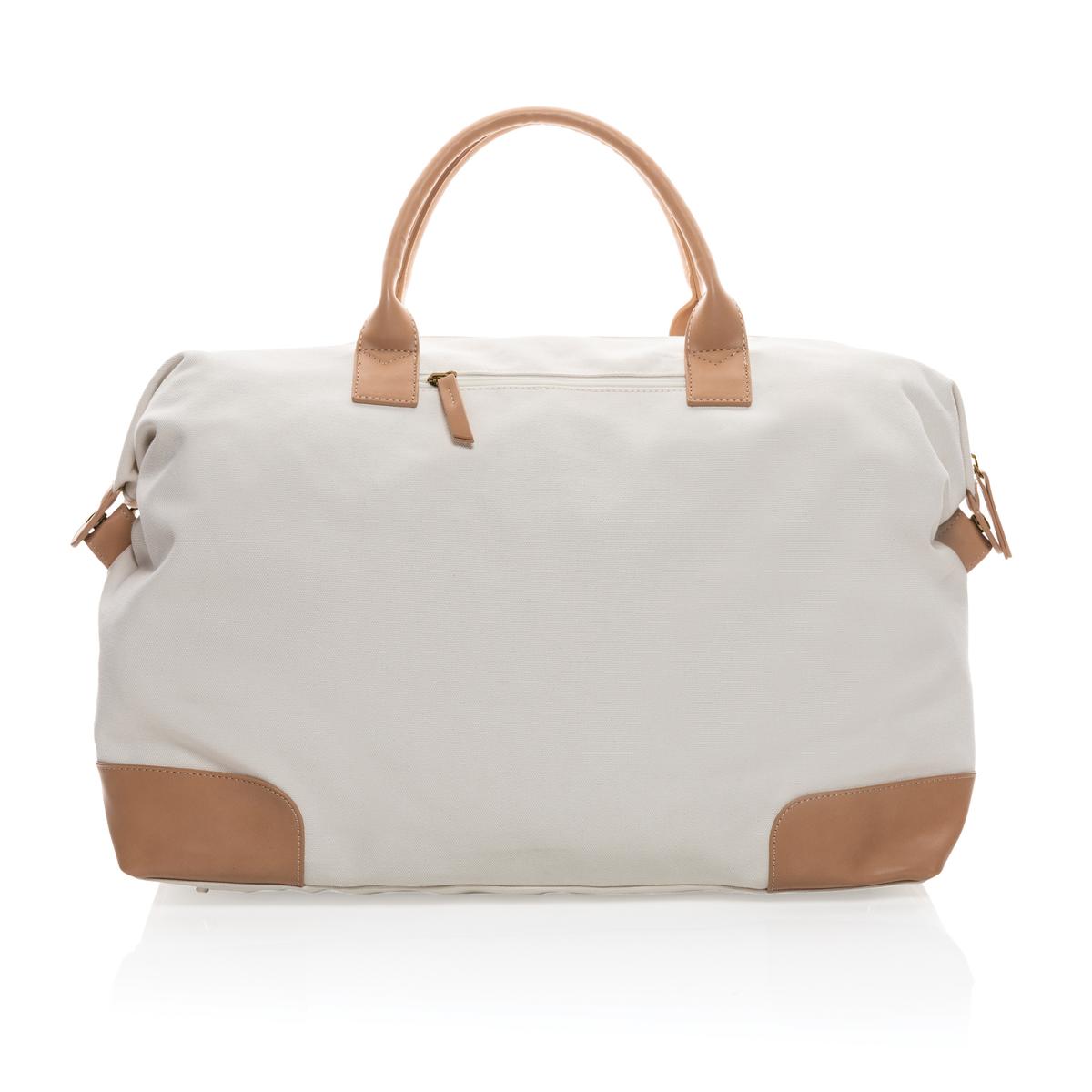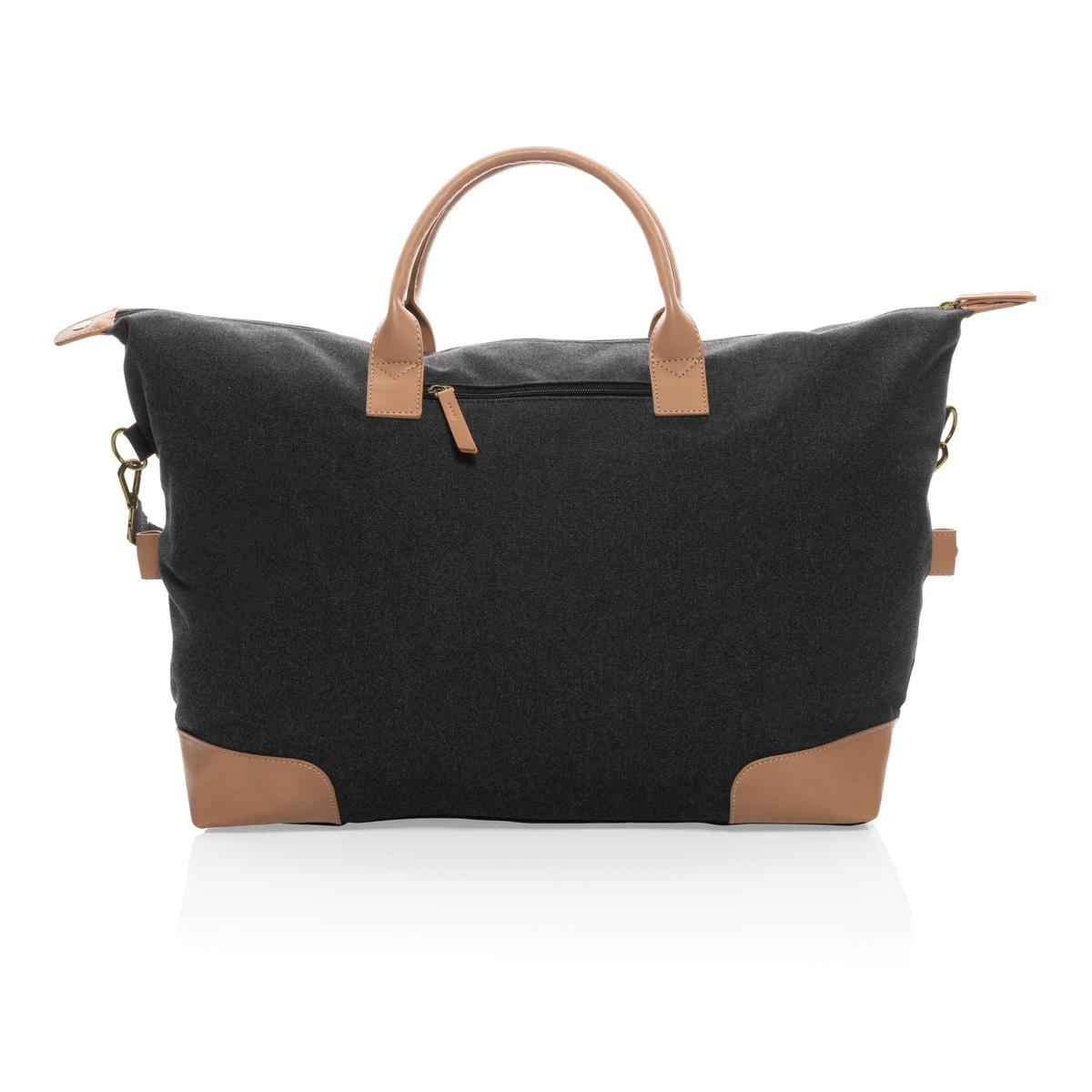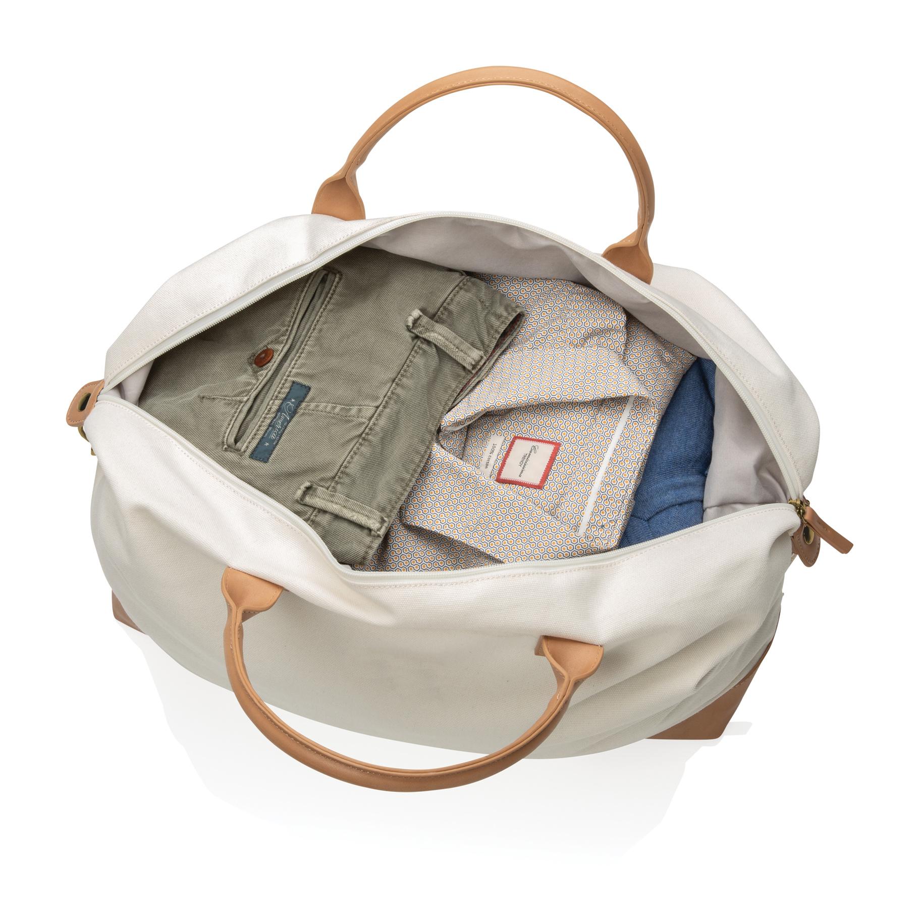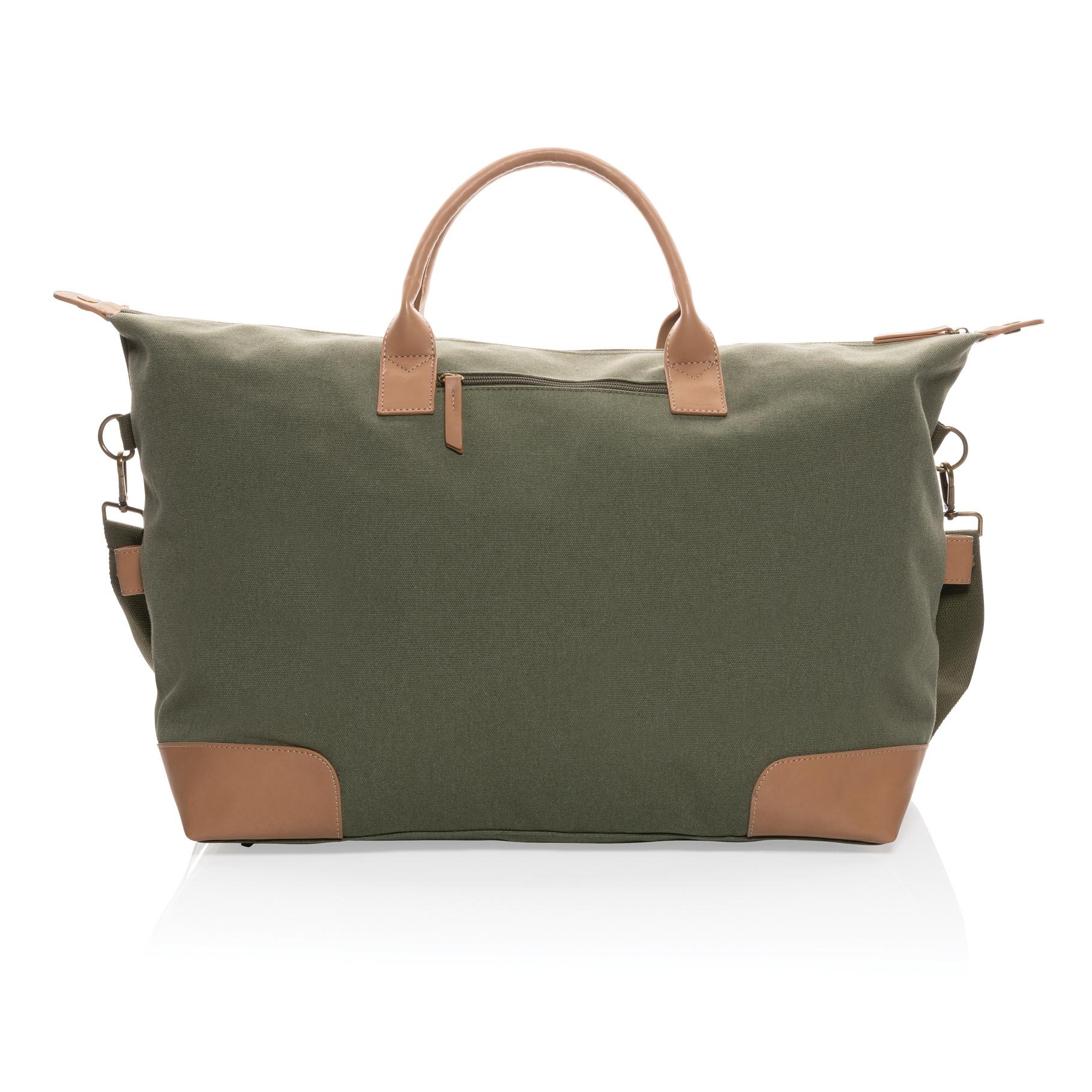 Sac weekend en toile composé de 60% coton recyclé et 40% polyester recyclé avec doublure en polyester recyclé 150D. Avec un compartiment spacieux, poche avant et poignées PU. Le dessous du sac comporte 4 clous en laiton pour garder votre sac propre lorsqu'il est sur le sol. Le traceur AWARE™ qui prouve l'utilisation authentique de la toile recyclée. 2% de chaque vente de produit Impact vendu sera versée en don à Water.org.